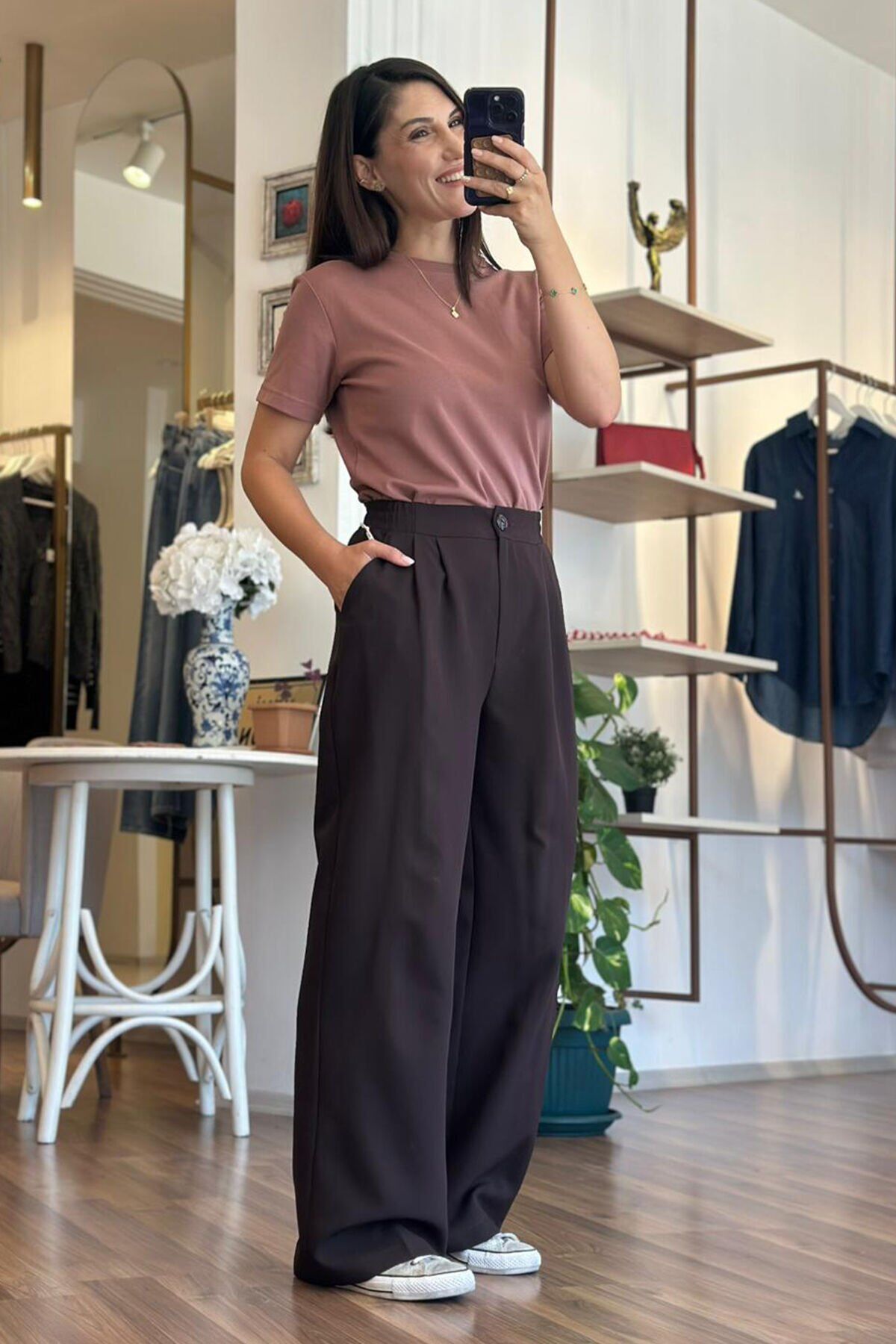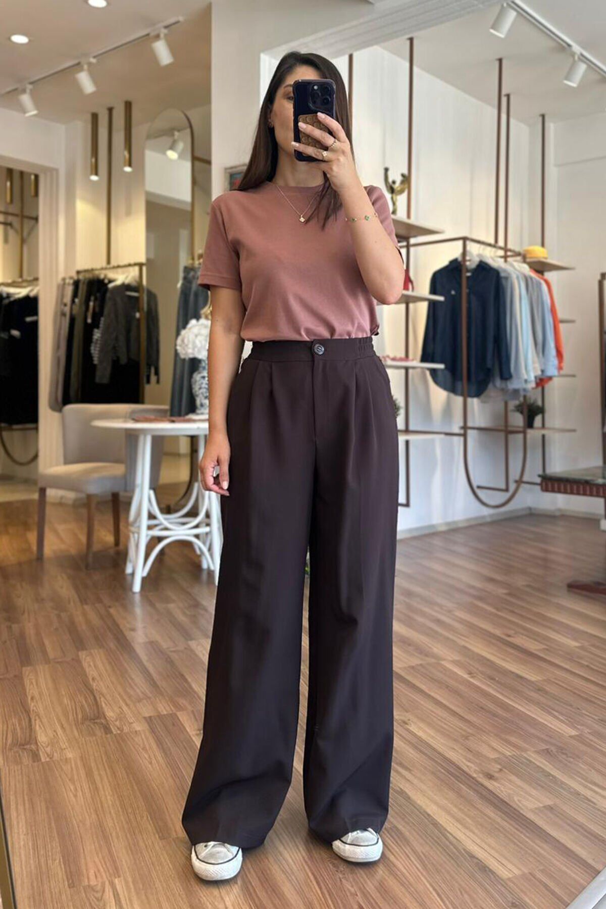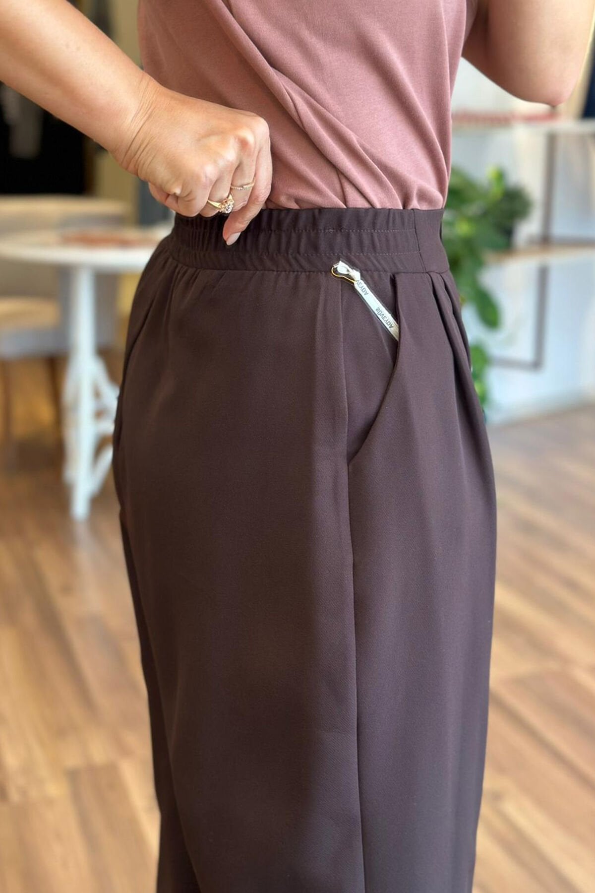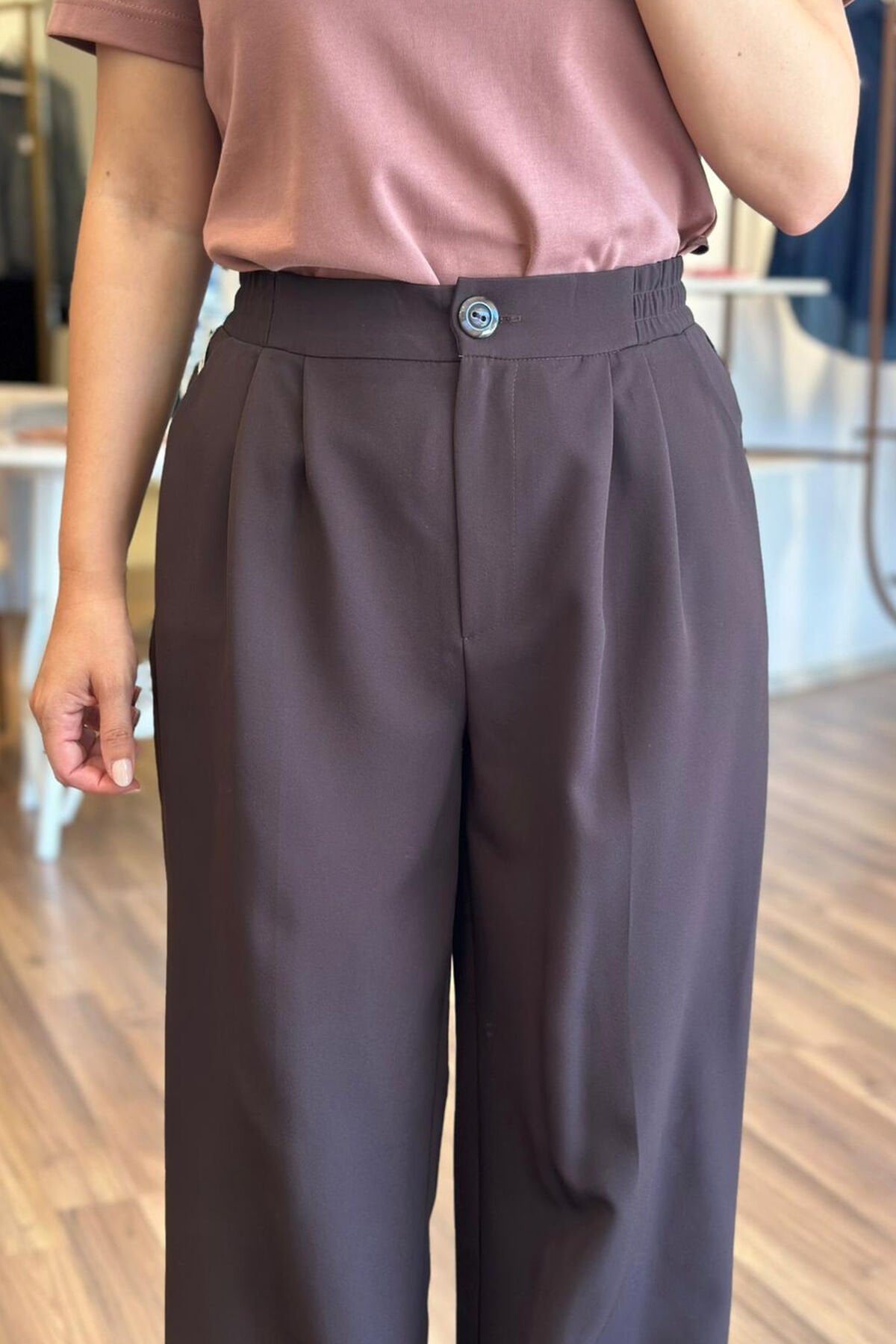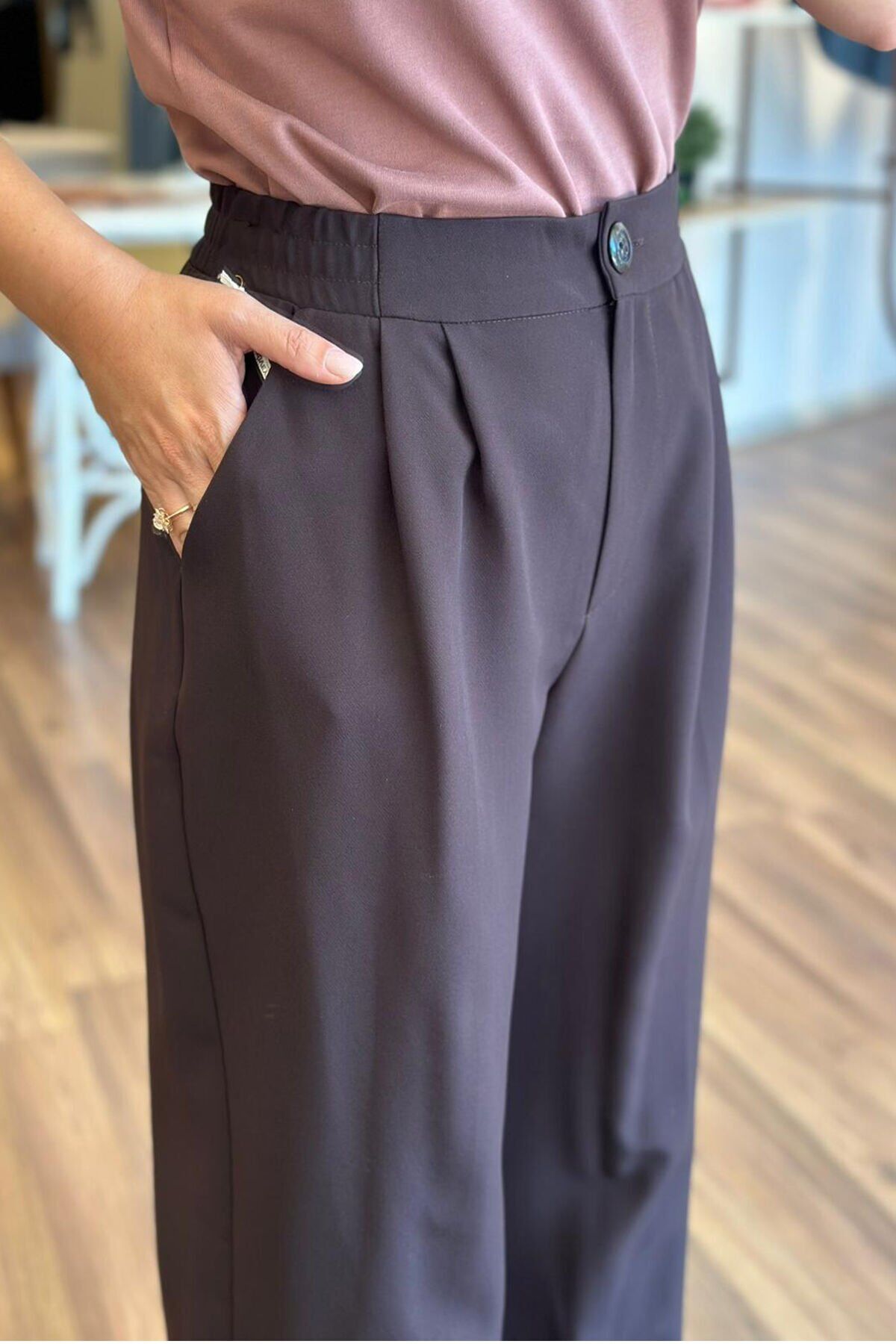 Bu acı kahve palazzo pantolon, beli lastikli tasarımıyla rahat bir kullanım sunuyor. Kırışmayan kumaşı sayesinde her zaman şık ve düzgün bir görünüm elde edebilirsin. Hem günlük kullanıma hem de özel günlerde tercih edebileceğin bir parça.
