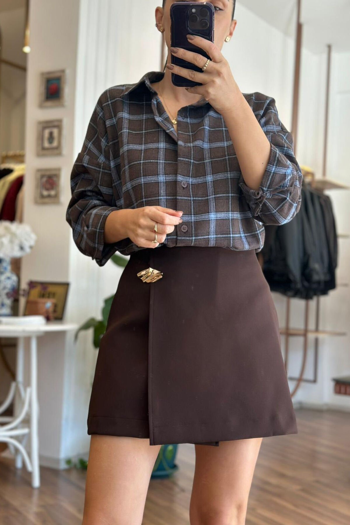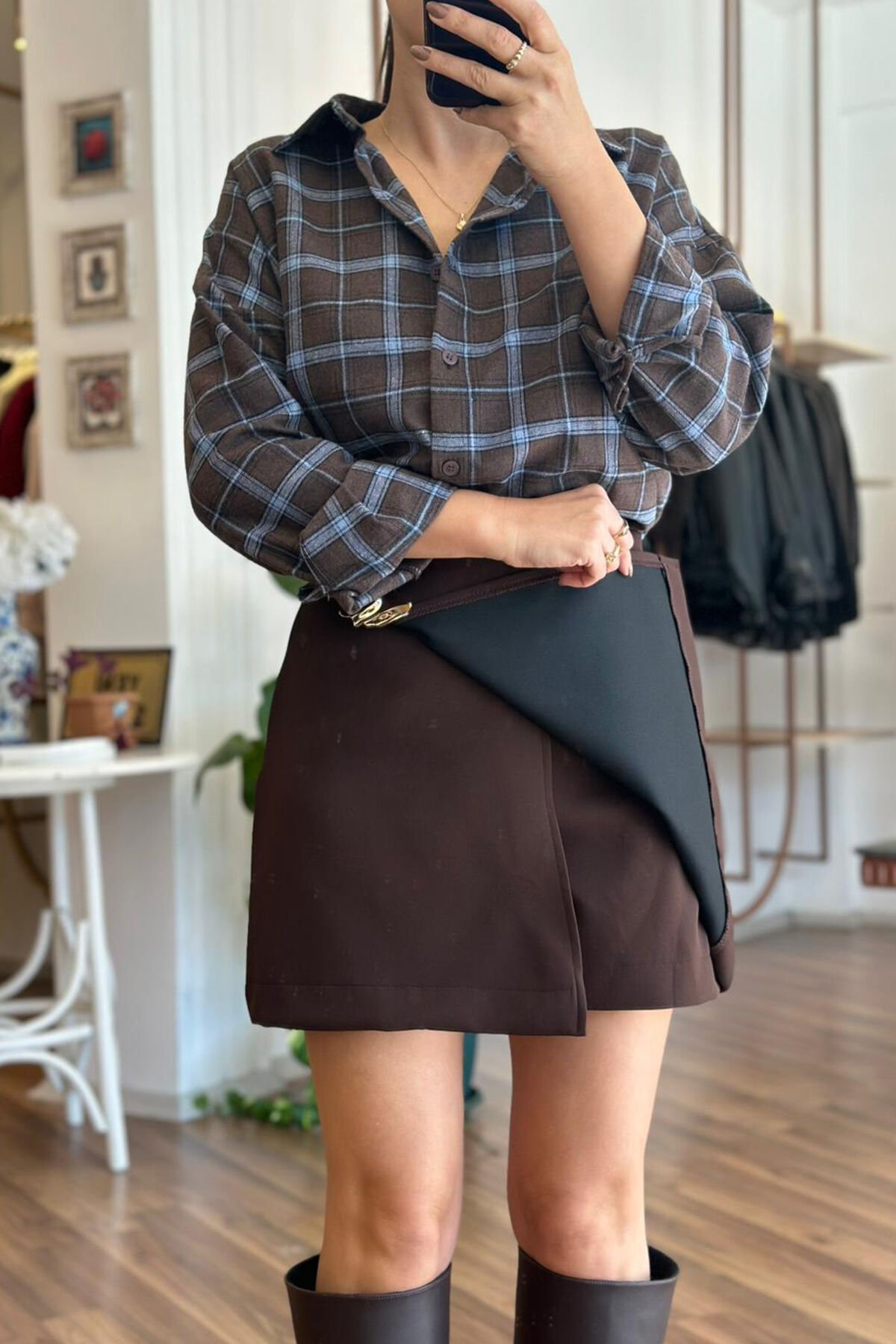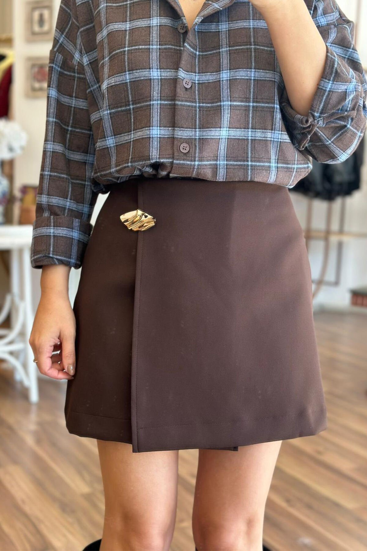 Acı Kahve Gold Toka Detaylı Kumaş Şort Etek, şıklığı ve rahatlığı bir arada sunar. Kaliteli kumaşı sayesinde gün boyu konfor sağlar. Gold toka detayı, modern ve zarif bir görünüm kazandırır. Hem şort hem etek formuyla sezonun trendlerini yakalar, stilinize özgünlük katar.
