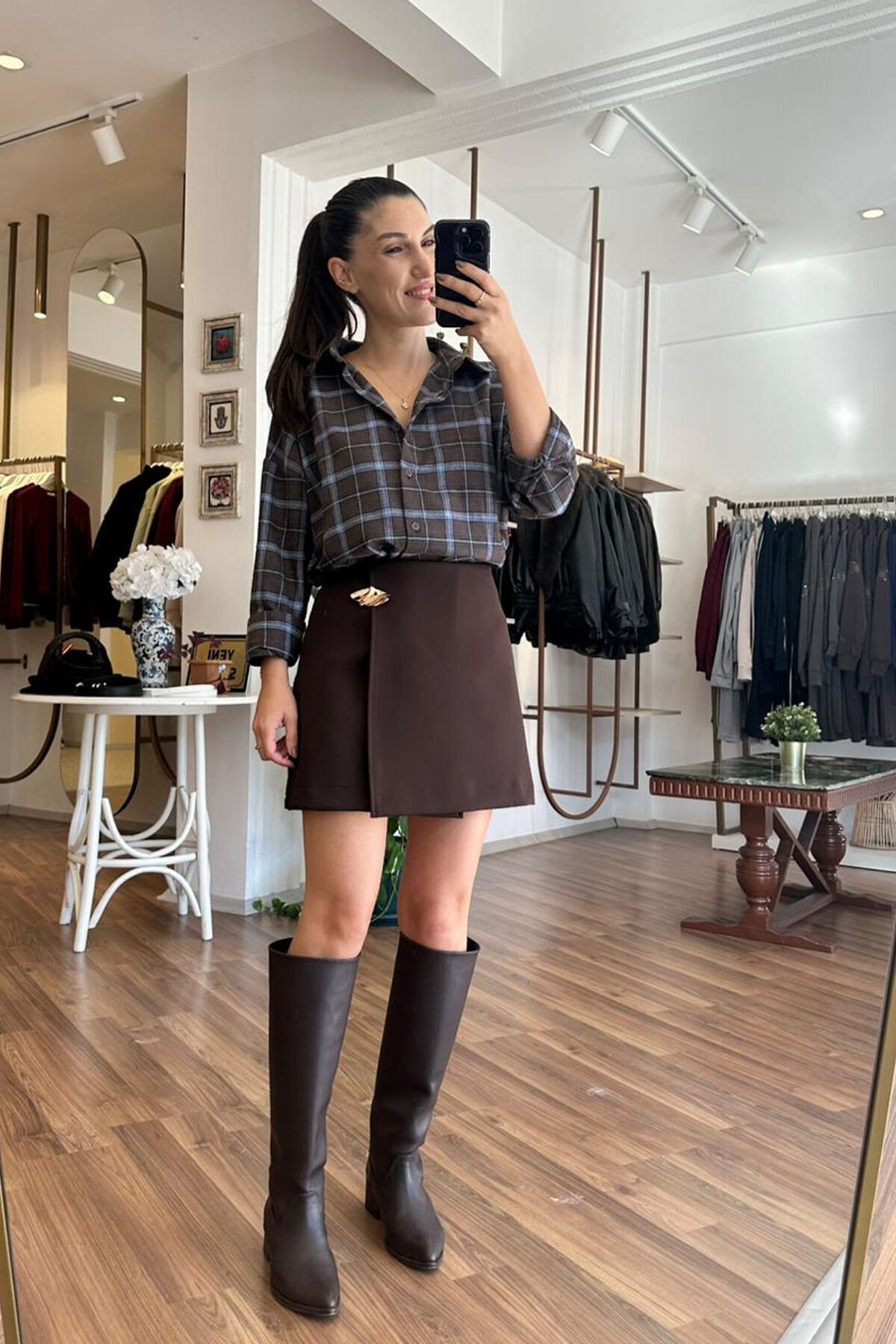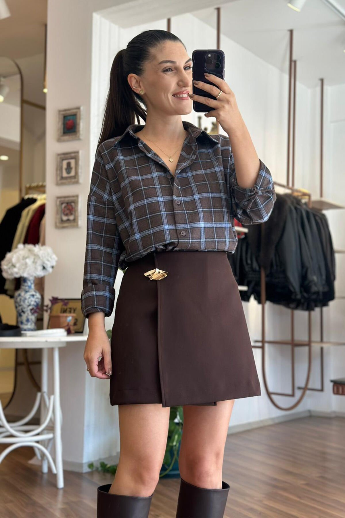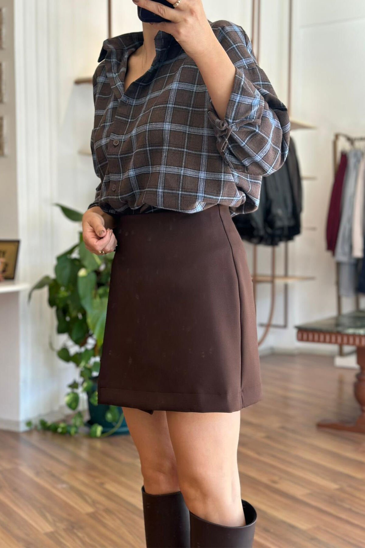 Acı Kahve Gold Toka Detaylı Kumaş Şort Etek, şıklığı ve rahatlığı bir arada sunar. Kaliteli kumaşı sayesinde gün boyu konfor sağlar. Gold toka detayı, modern ve zarif bir görünüm kazandırır. Hem şort hem etek formuyla sezonun trendlerini yakalar, stilinize özgünlük katar.