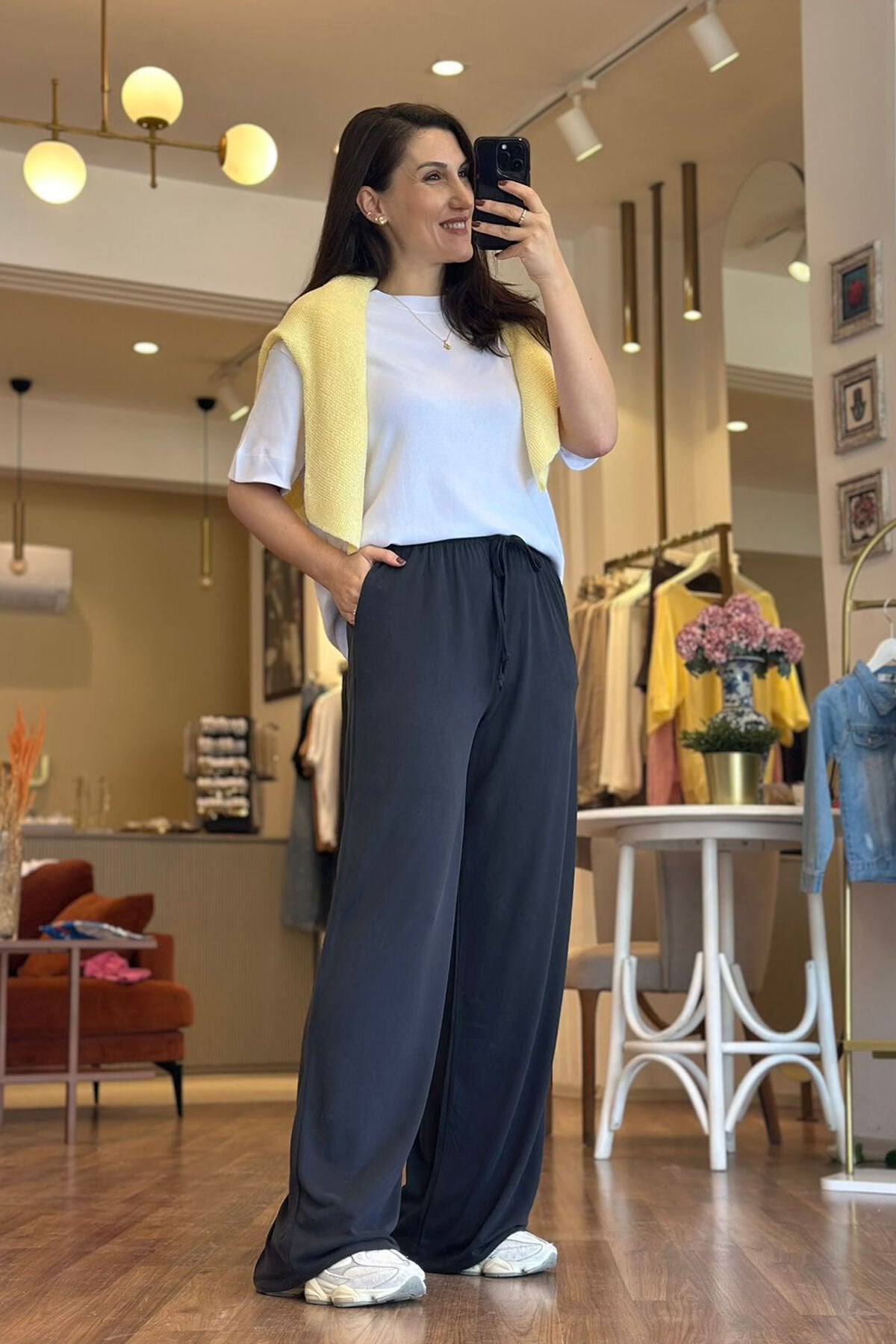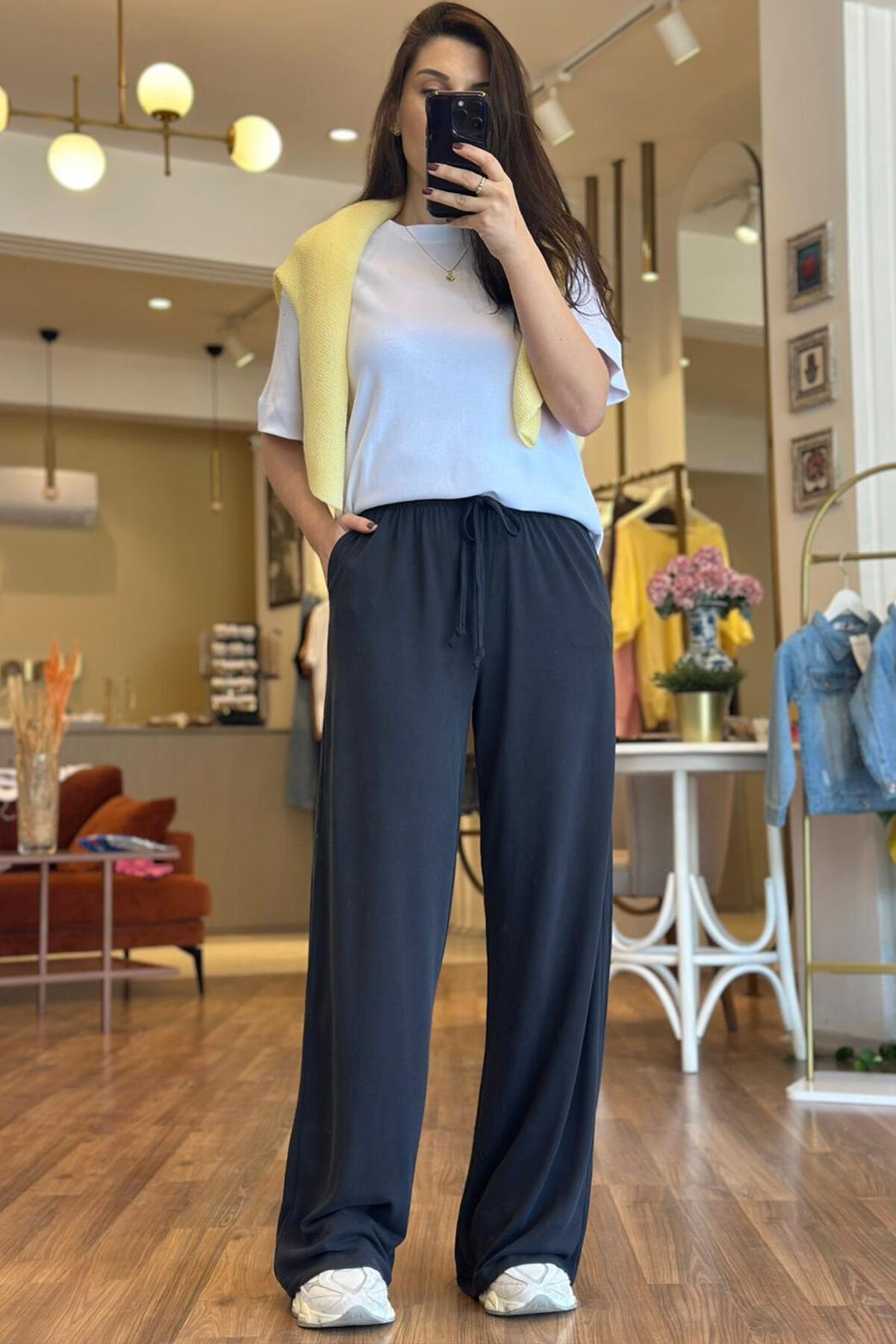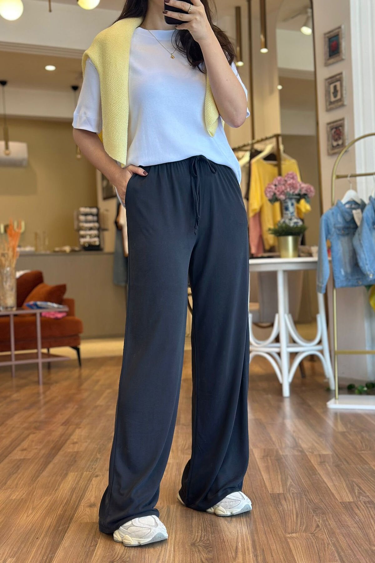 Antrasit Modal Kumaş Beli Bağcıklı Bol Paça Eşofman Altı, rahat ve şık tasarımıyla günlük kombinlerin vazgeçilmezi haline geliyor. Modal kumaşın yumuşak dokusu sayesinde konforlu bir kullanım sunan bu eşofman altı, belindeki bağcık detayıyla kişiye özel ayar imkanı sağlar. Bol paça kesimi sayesinde hem hareket özgürlüğü sağlar hem de modern bir görünüm kazandırır. Krem rengi, kolay kombinlenebilir olması sebebiyle farklı üstlerle rahatlıkla uyum sağlar. Hem evde hem dışarıda kullanıma uygun olan Krem Modal Kumaş Beli Bağcıklı Bol Paça Eşofman Altı, stilinizde rahatlığı ve şıklığı bir arada sunar.
