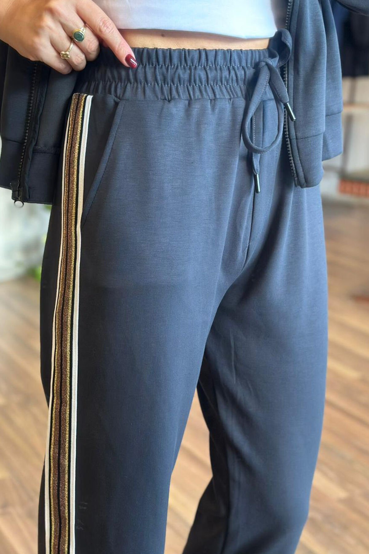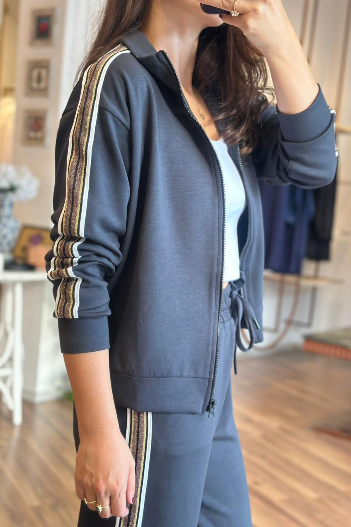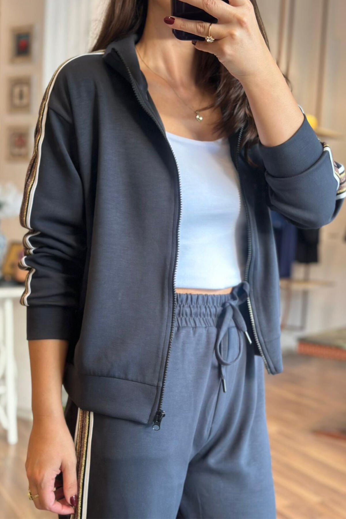 Antrasit şerit detaylı modal kumaş alt-üst takım, şık ve rahat bir günlük stil sunar. Yumuşak modal kumaşı, nefes alabilirlik sağlar ve cilt dostudur. Üstü ve altı uyumlu tasarımıyla hem evde hem dış mekanda konforlu kullanım için idealdir. Modern, zarif bir tercih.