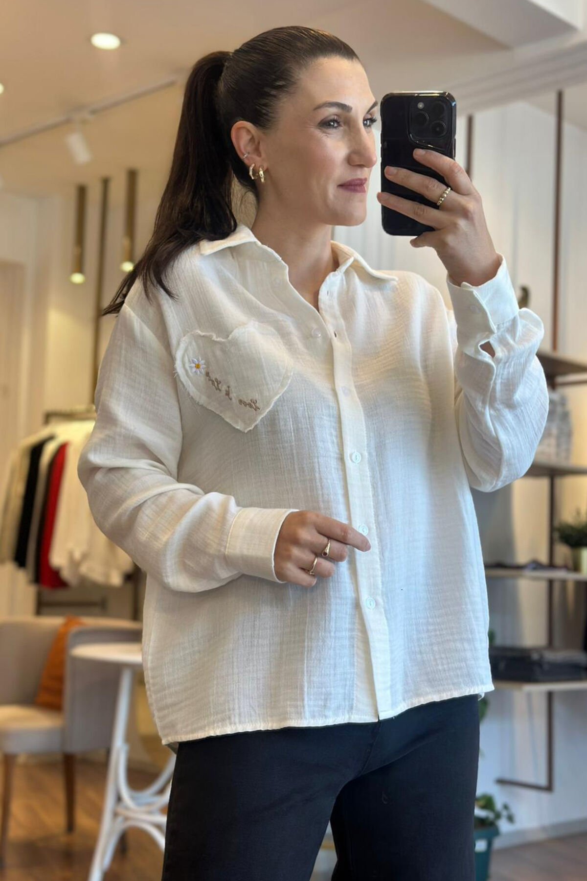 Beyaz nakışlı müslin gömlek, şıklığı ve rahatlığı bir arada sunan özel bir giysi seçeneğidir. Yaz aylarında tercih edilen bu gömlek, nefes alabilen keten kumaşı sayesinde ferah bir kullanım sağlar. Beyaz nakışlı keten gömlek, üzerindeki zarif nakış detayları ile sade fakat dikkat çekici bir görünüm yaratır. Hem günlük kullanımda hem de özel davetlerde tercih edilebilen bu gömlek, farklı kombinlerle stilinizi tamamlamanıza yardımcı olur. Beyaznakışlı keten gömlek modasında hem klasik hem modern dokunuşları bir araya getirir, gardırobunuzun vazgeçilmezi olacaktır. Rahat kesimi ve kaliteli malzemesiyle uzun ömürlü kullanım sağlar.