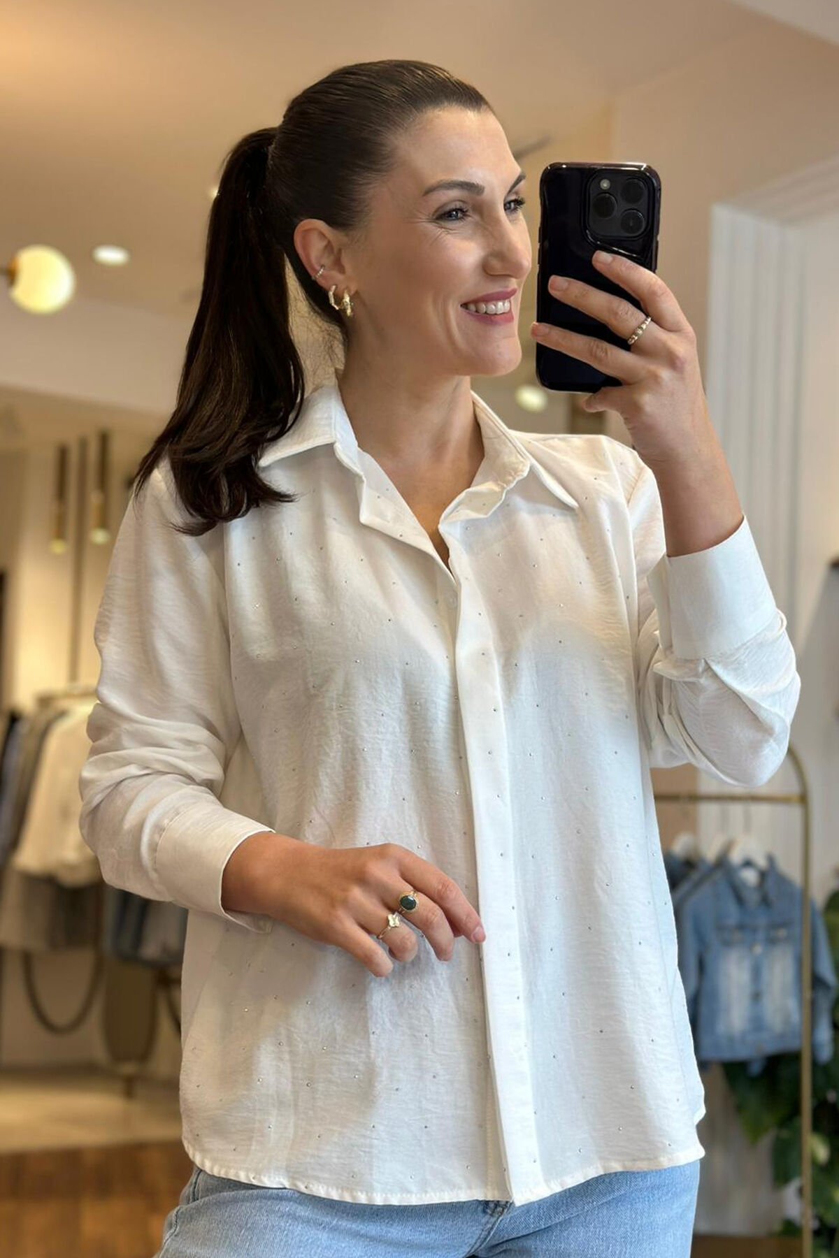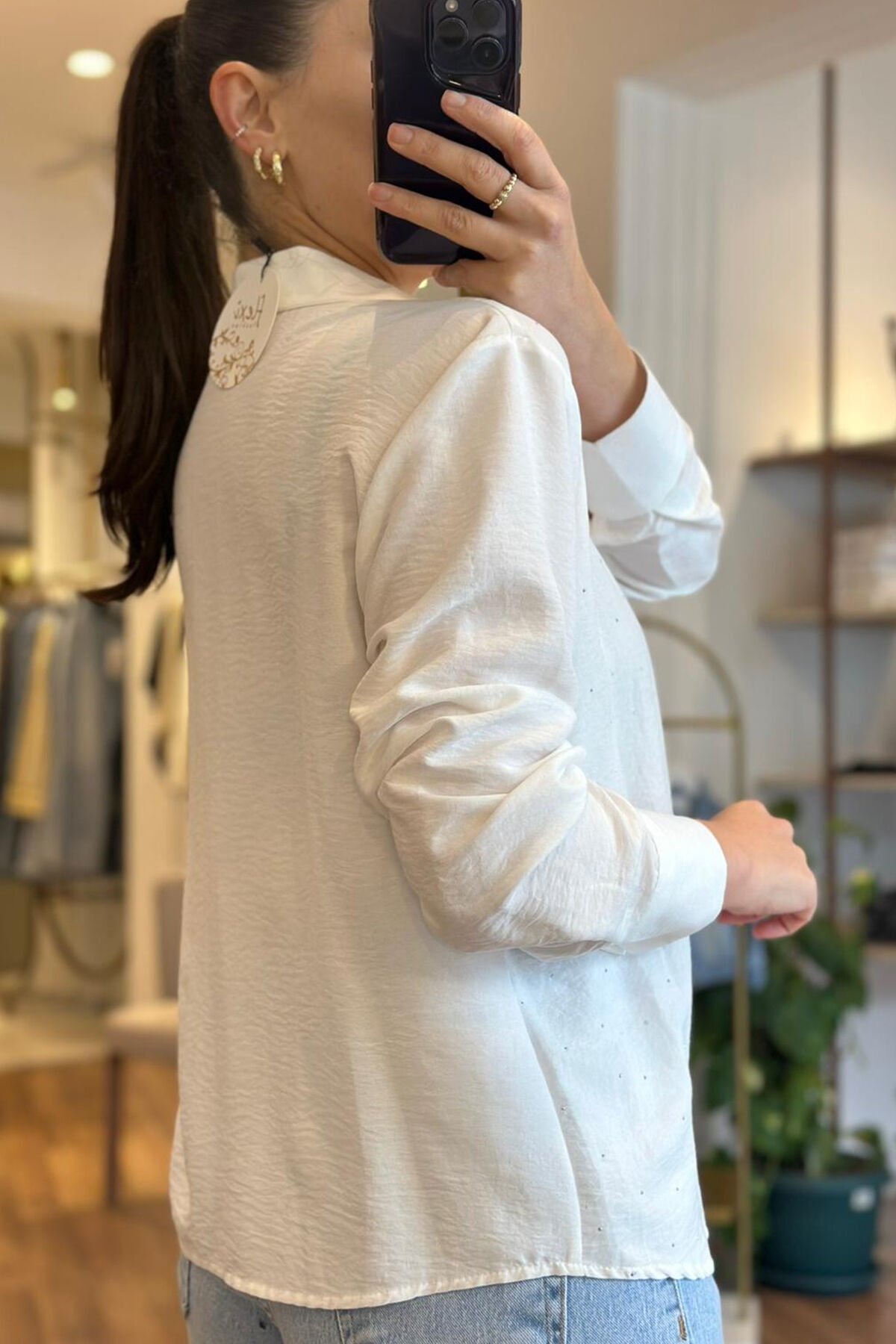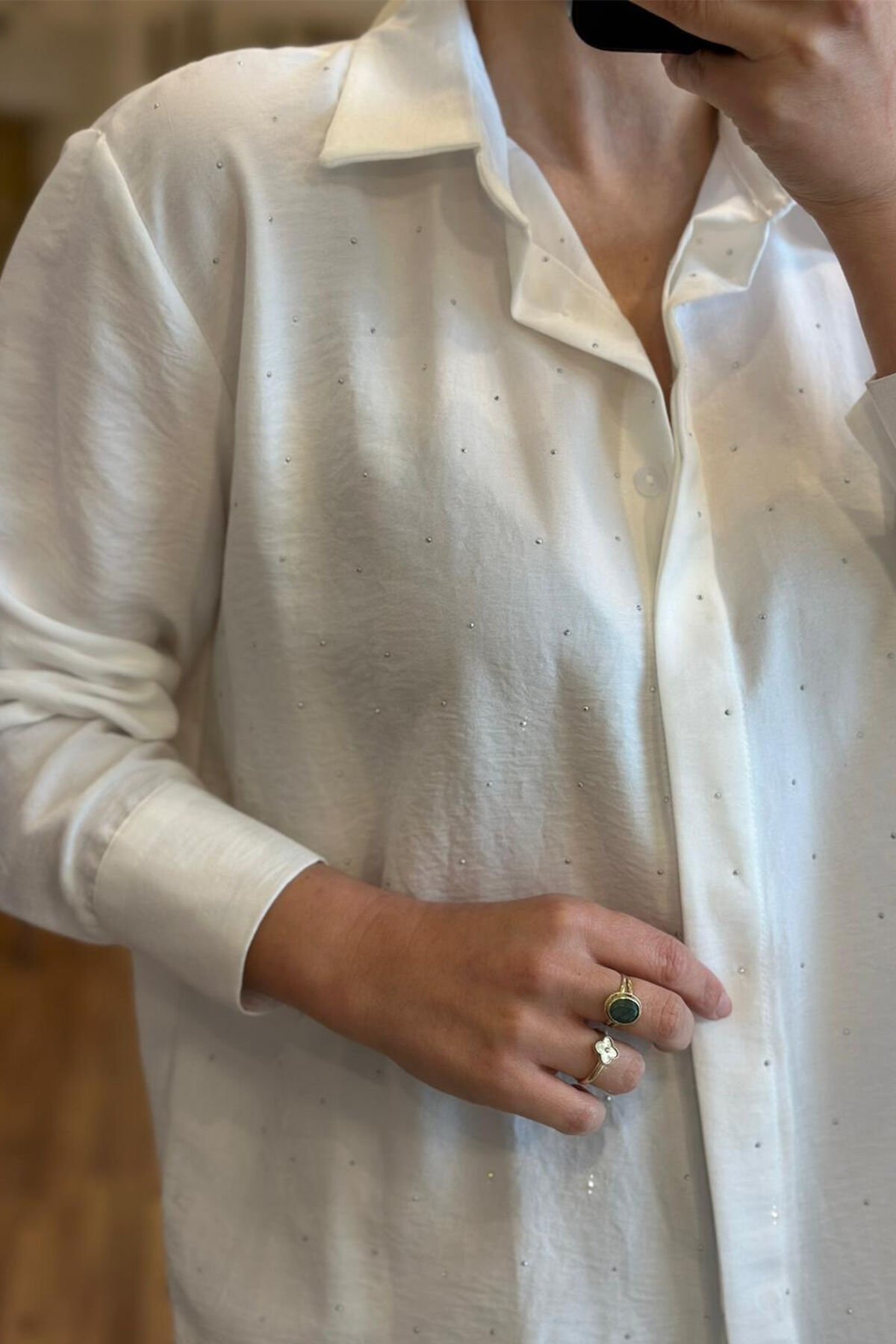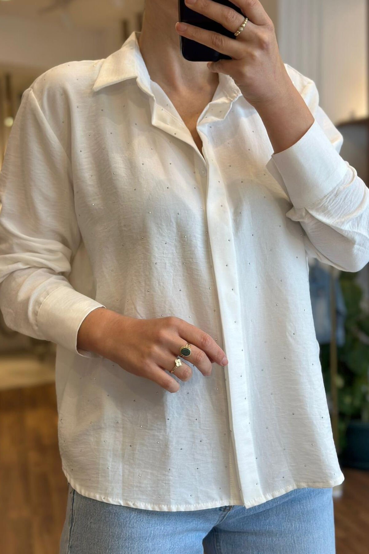 Beyaz taşlı tensel kumaş gömlek, rahatlığı ve şıklığı bir araya getiren ideal bir seçenektir. Tensel kumaş, tiril tiril dokuya sahip olmasıyla bilinir ve bu özellik gömleğe hem hafiflik hem de nefes alma avantajı sağlar. Beyaz taşlarla süslenen bu gömlek, sade tasarımı sayesinde birçok farklı kombinle kolayca uyum sağlar. Tensel kumaşın yumuşak yapısı, gün boyu konfor sunarken, gömleğin şıklığını da ön plana çıkarır. Tiril tiril doku sayesinde yaz aylarında serin tutar ve aynı zamanda zarif bir görünüm oluşturur. Beyaz taşlı tensel kumaş gömlek, gardırobunuzda mutlaka yer alması gereken parçalar arasında yer alır.