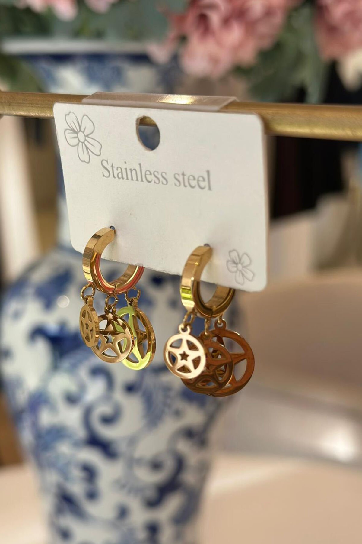 Çoklu Yıldız Gold Çelik Küpe