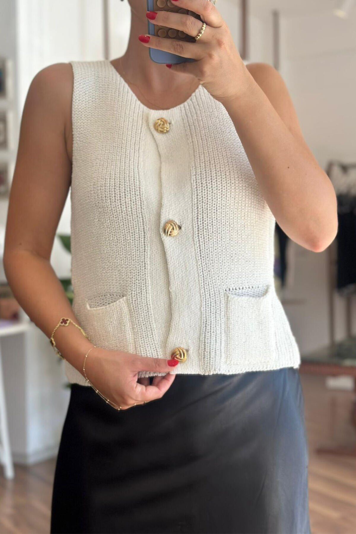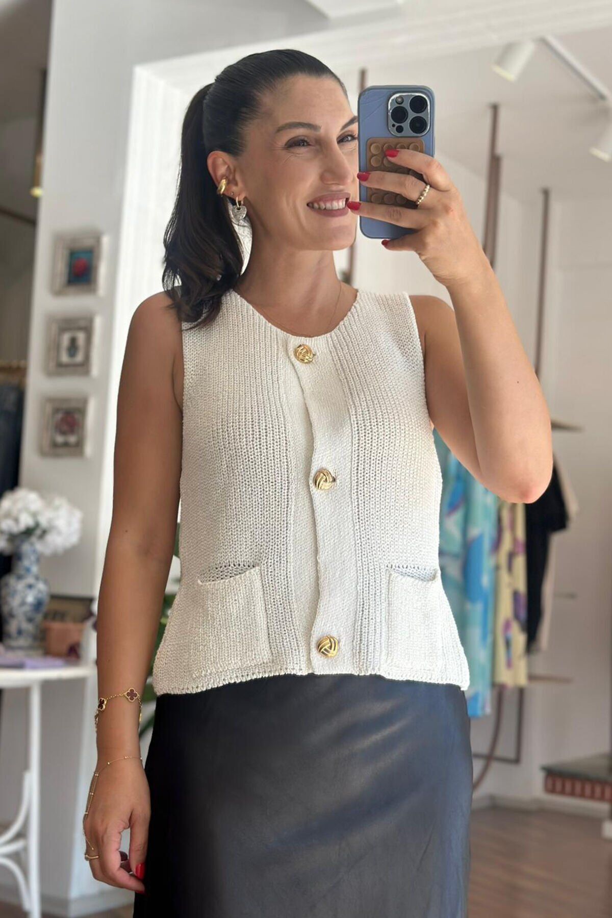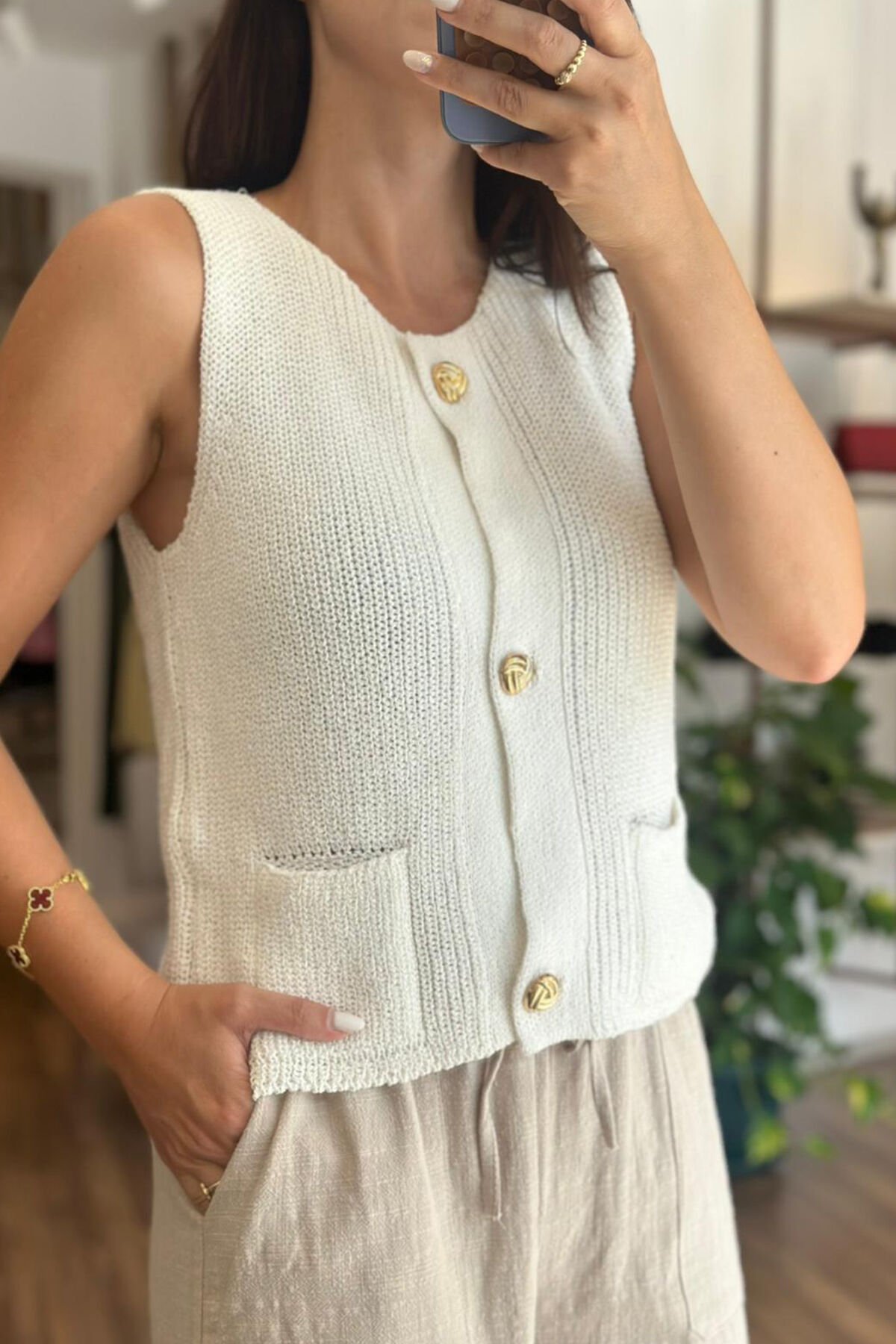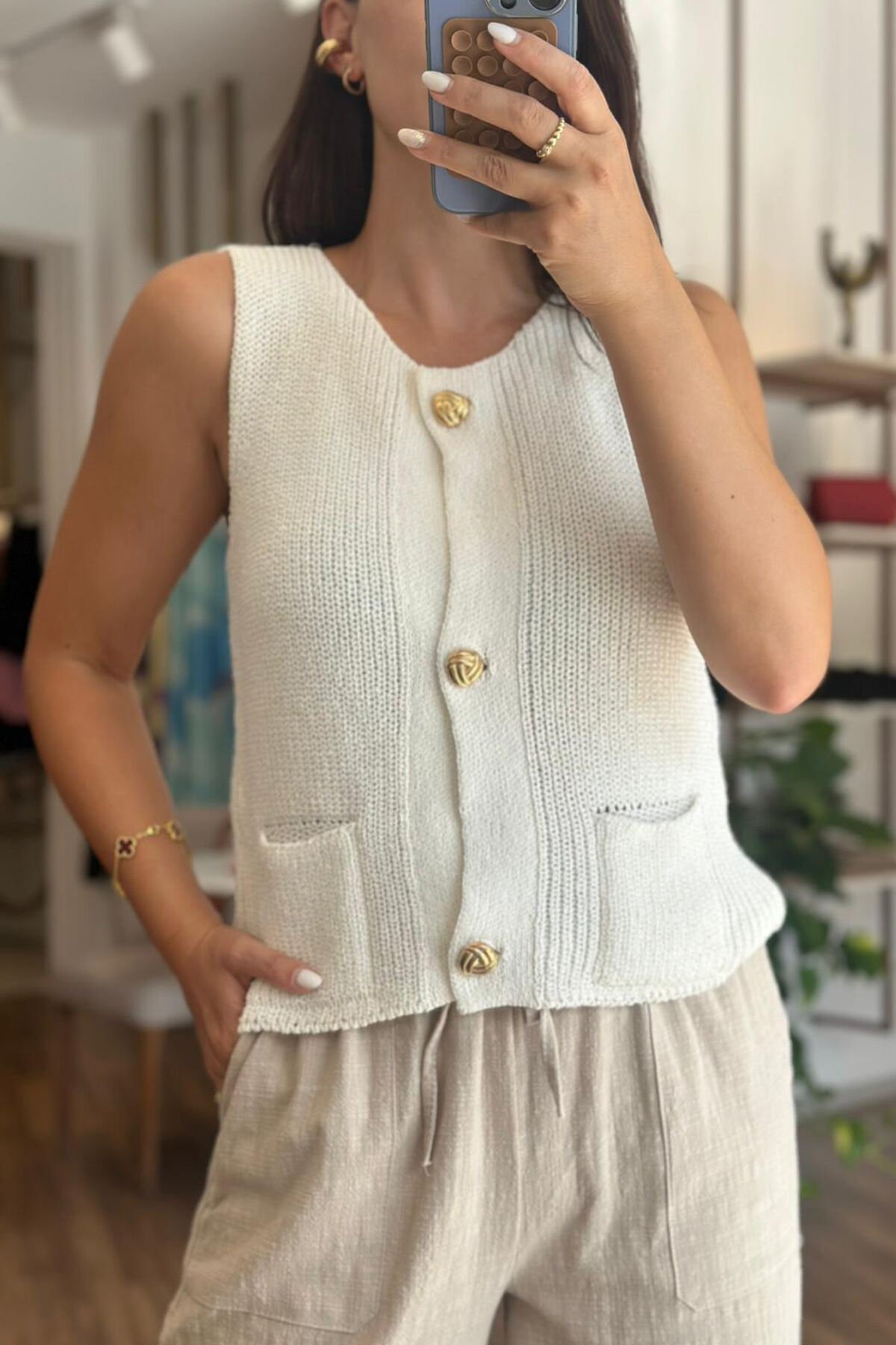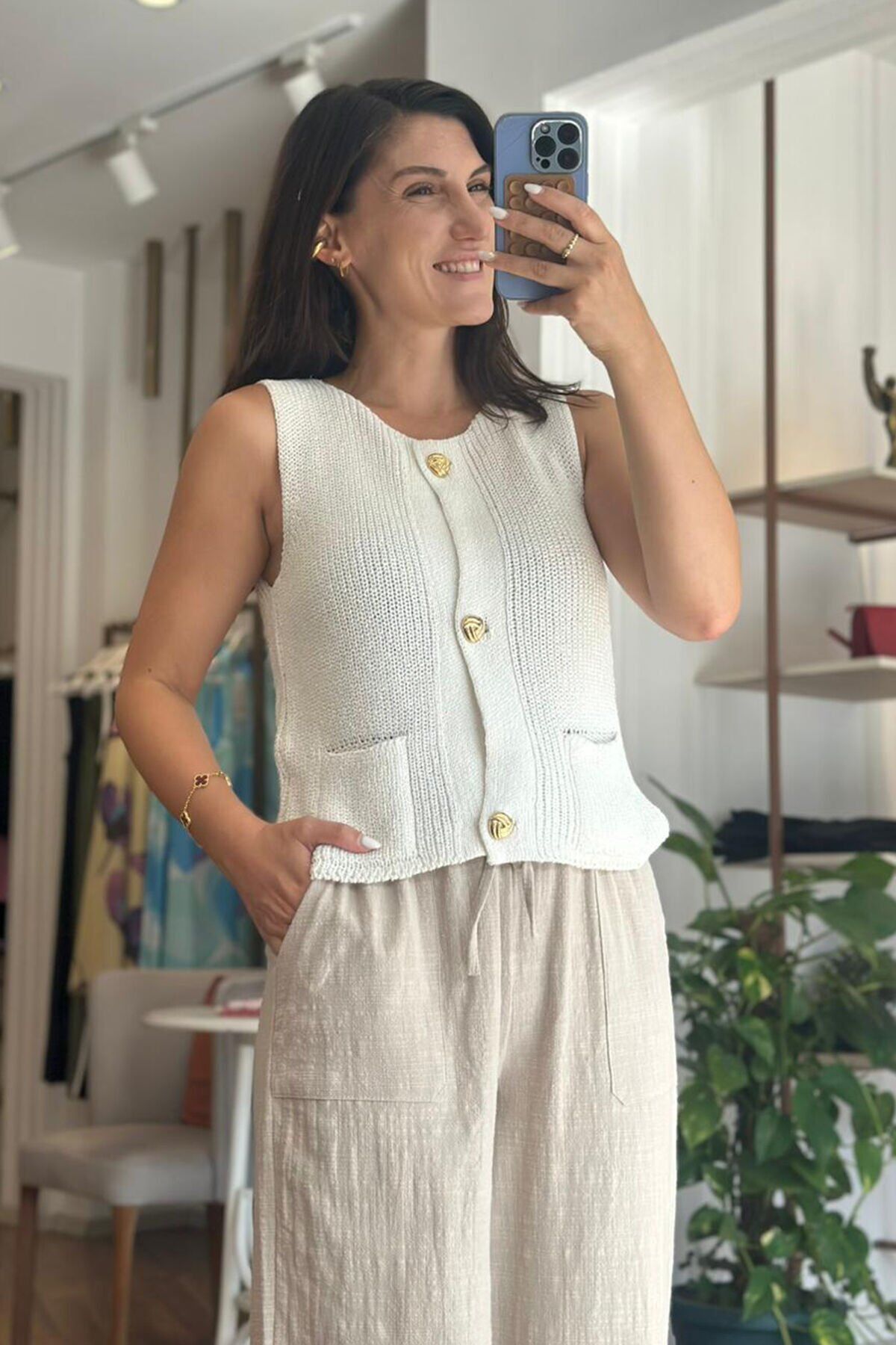 Gold düğmeli beyaz mertserize yelek, şıklığı ve rahatlığı bir arada sunar. Kaliteli malzemelerden üretilmiş olan bu yelek, her stile uyum sağlar. Hem günlük giyimde hem de özel günlerde tercih edebileceğiniz bir parçadır. Sade ve zarif tasarımı ile dikkat çeker. Gardırobunuzun vazgeçilmez parçalarından biri olmaya aday!