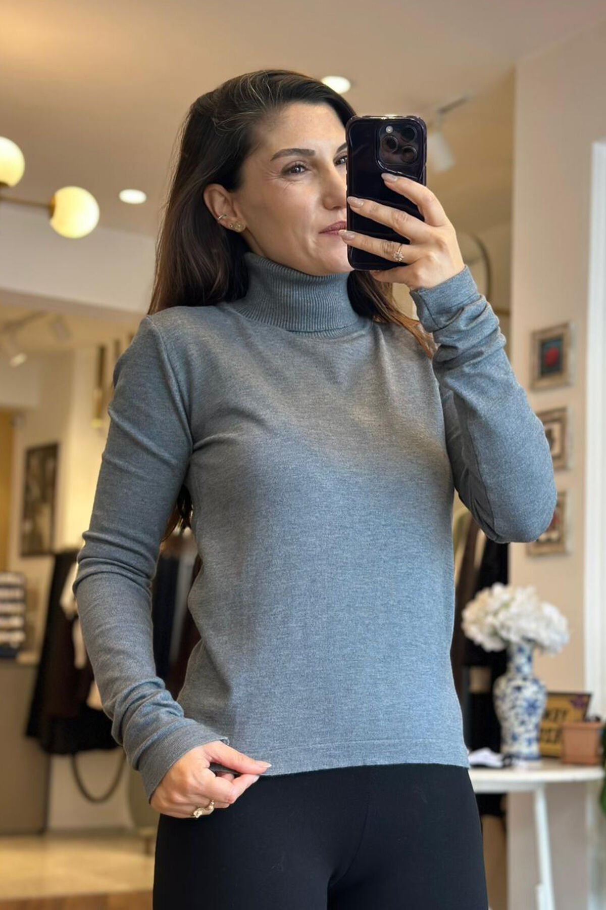 Gri balıkçı yaka standart beden triko,dokusu ve nefes alan yapısı ile en çok giydiğiniz parça olacak.