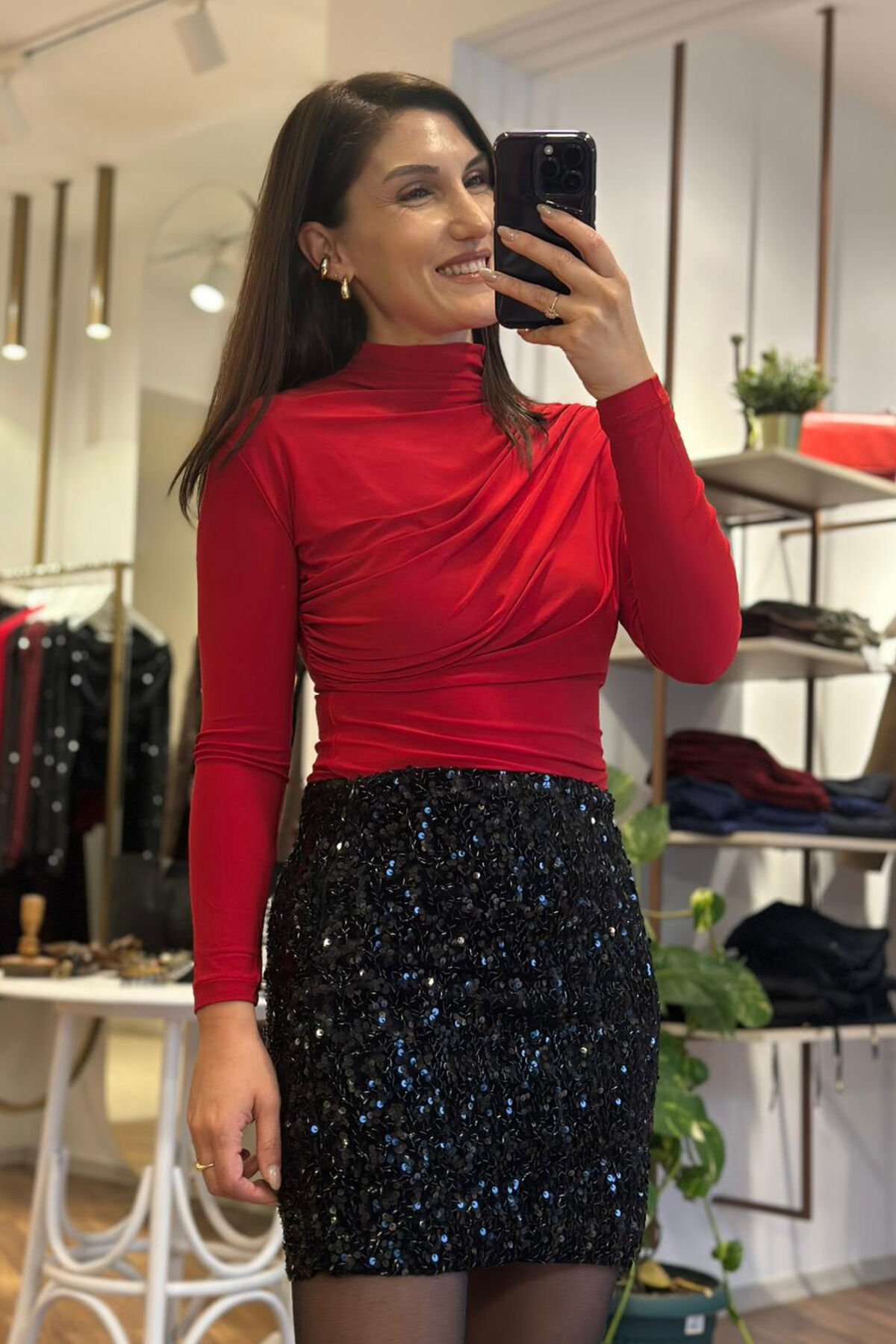 Şık ve modern duruşuyla kombinlere zarafet katan bu kırmızı drapeli bluz, vücuda oturan formu ve esnek yapısıyla hem rahat hem de göz alıcı bir görünüm sunar. Davet ve günlük şıklık için kolayca kombinlenebilir.