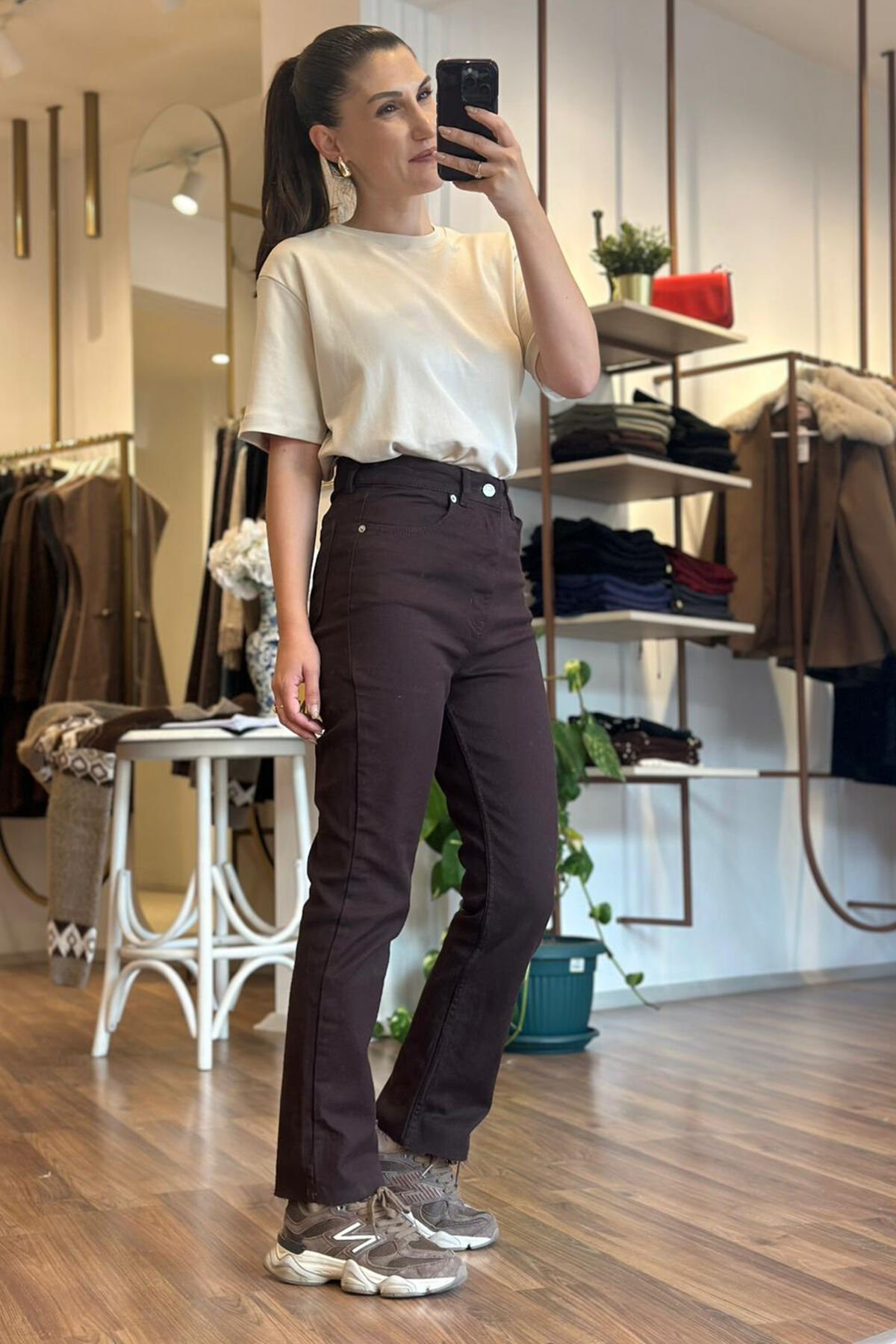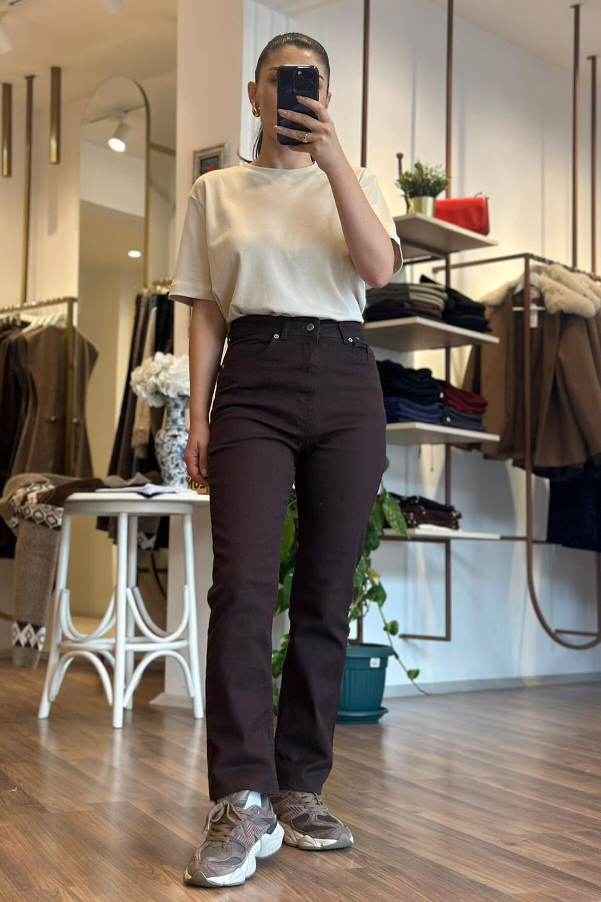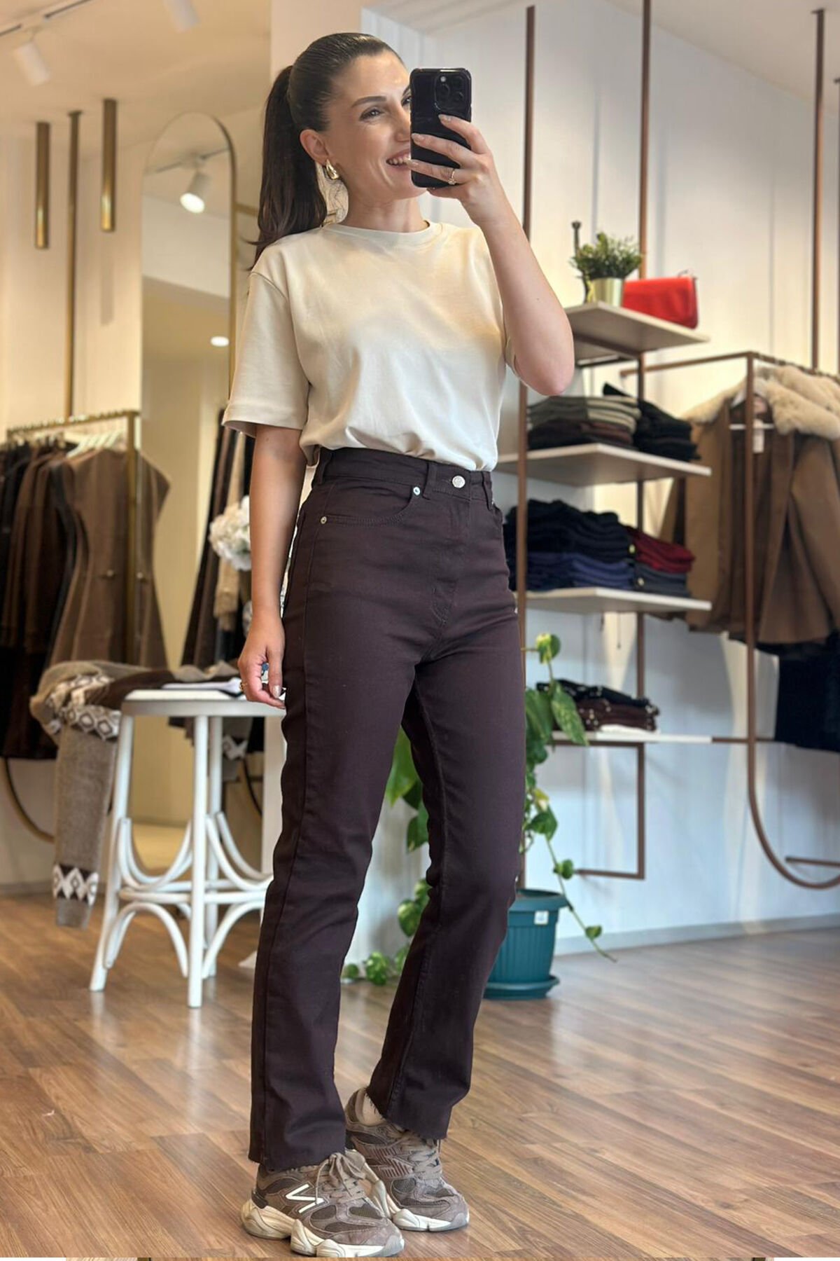 Acıkahve boyfit pantolon, hem şık hem de rahattır. Kaliteli pamuklu kumaşıyla gün boyu konfor sağlar. Günlük kullanım ve özel günler için ideal bir seçenektir.