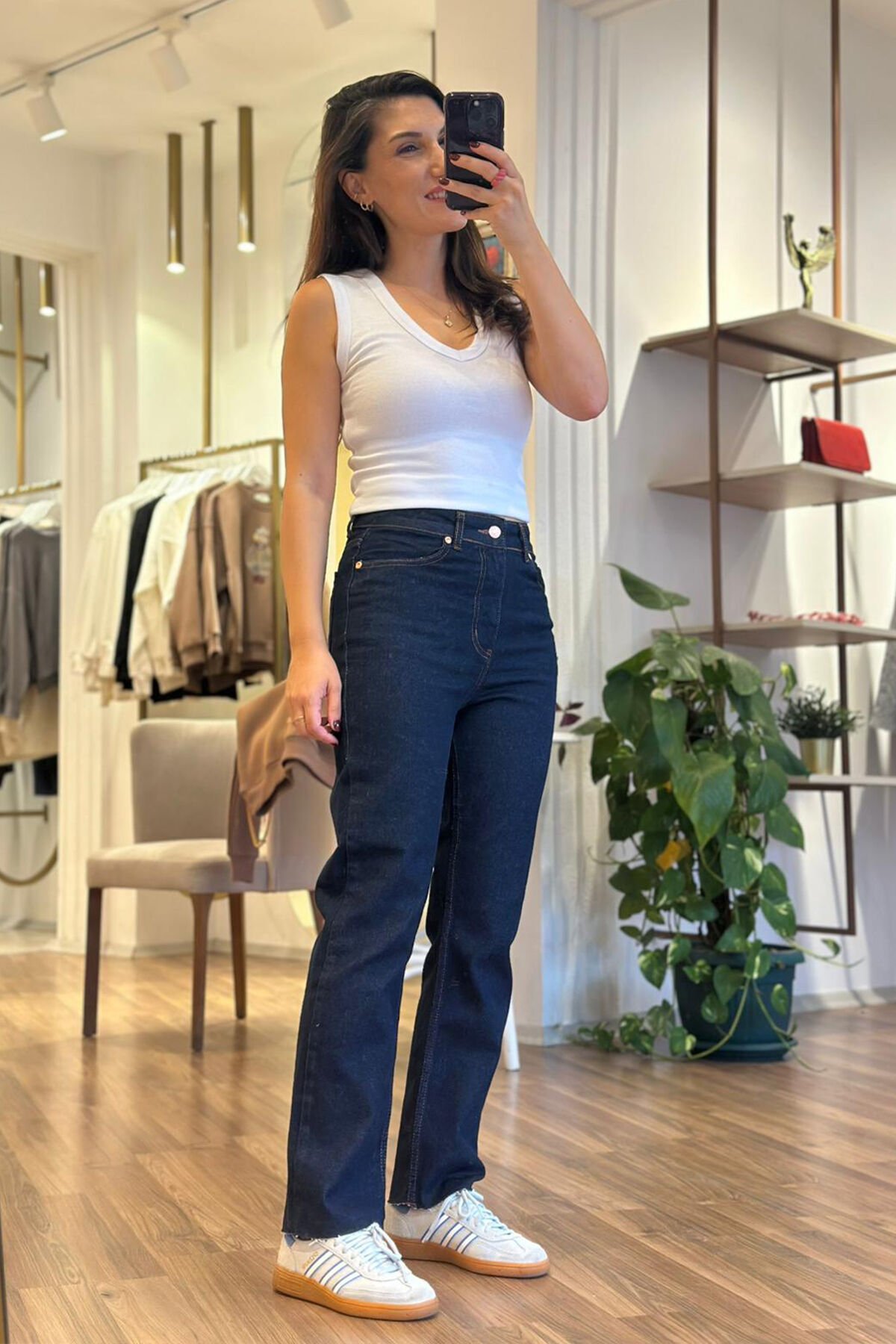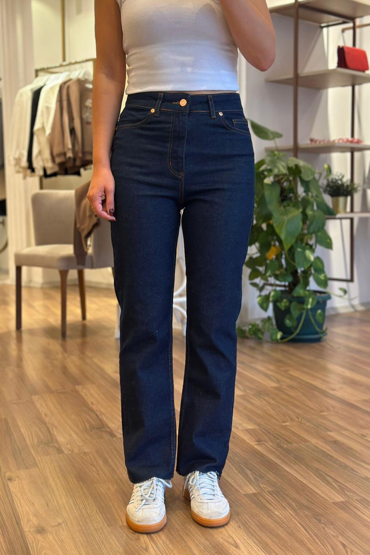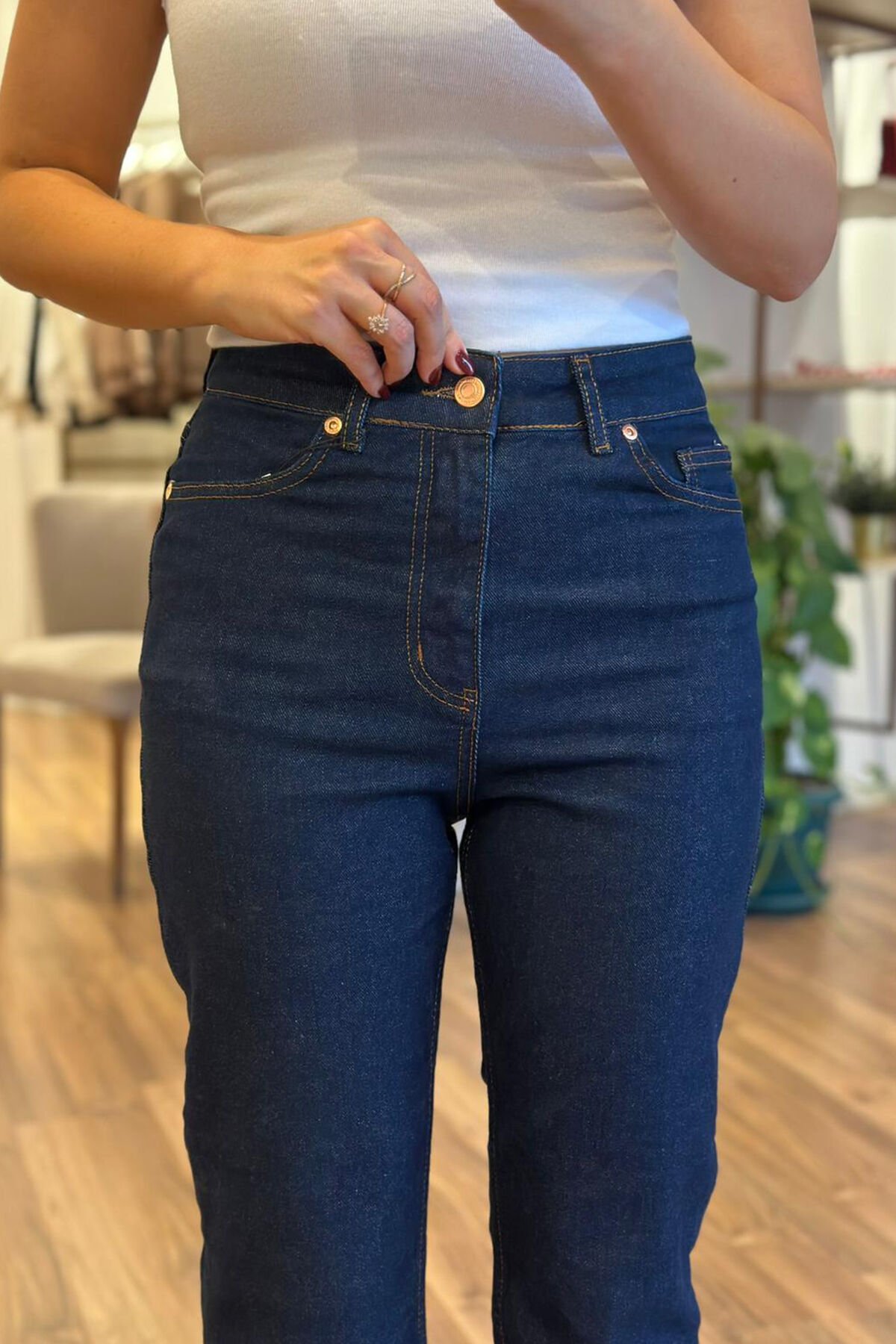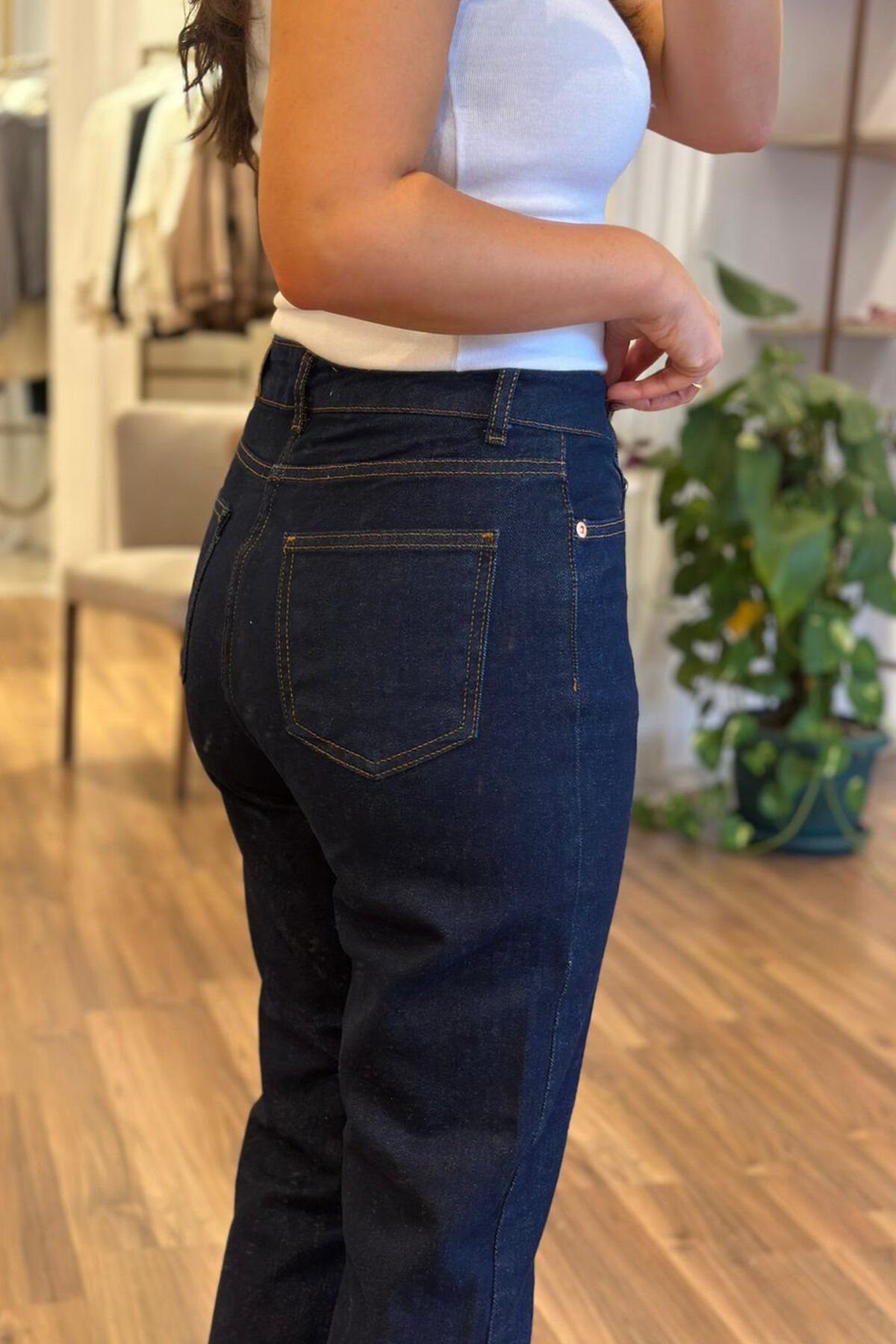 Bu koyu lacivert renkli dikişli boyfit pantolon, hem şık hem de rahattır. Kaliteli pamuklu kumaşıyla gün boyu konfor sağlar. Günlük kullanım ve özel günler için ideal bir seçenektir.