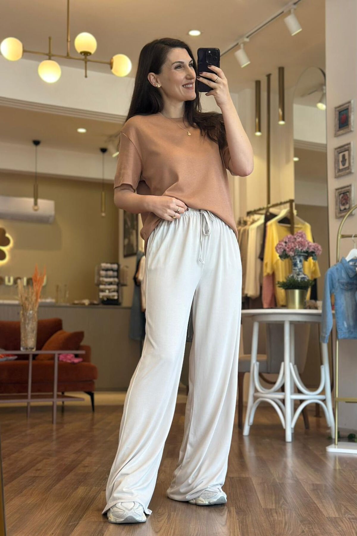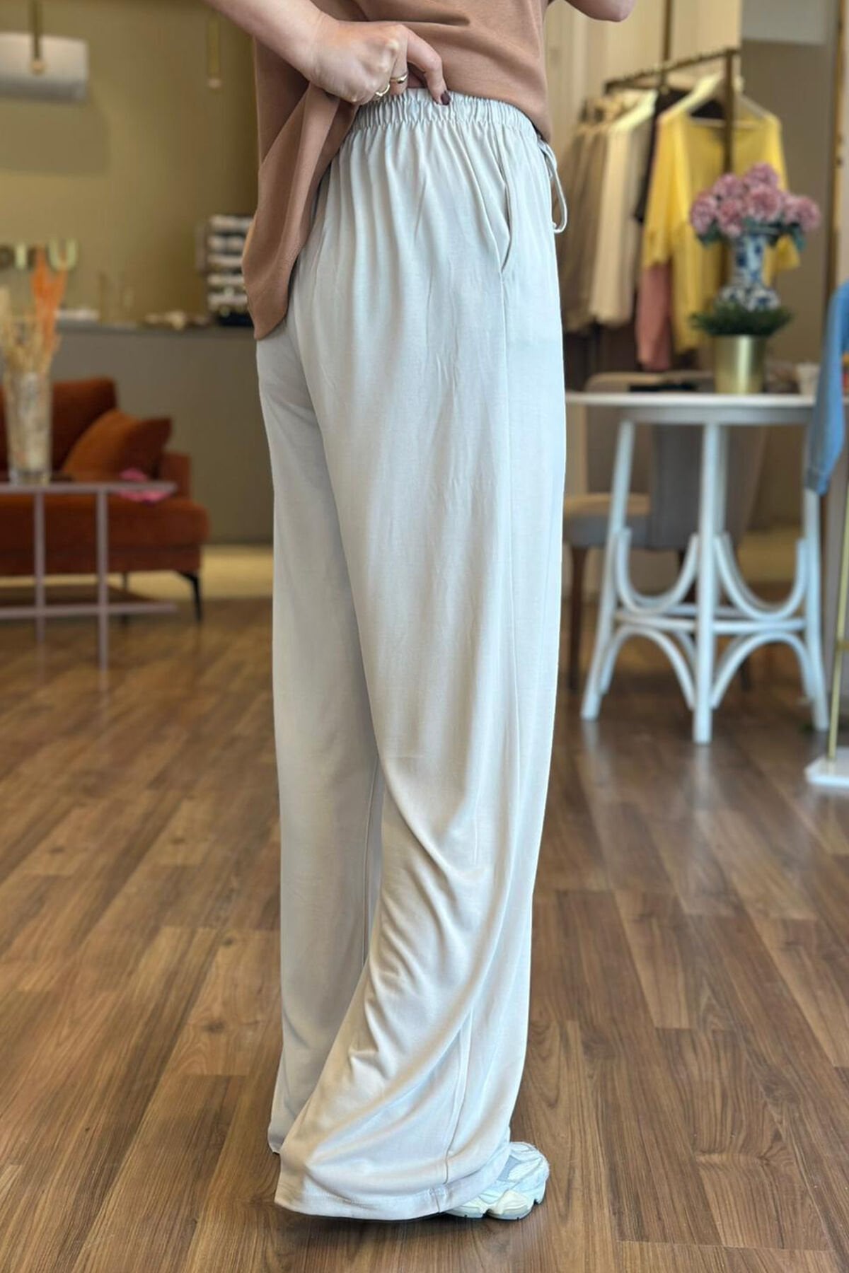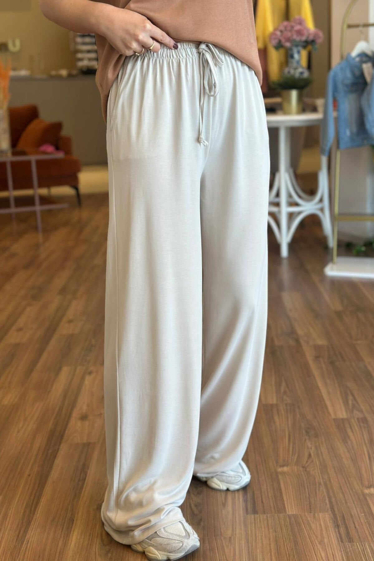 Krem Modal Kumaş Beli Bağcıklı Bol Paça Eşofman Altı, rahat ve şık tasarımıyla günlük kombinlerin vazgeçilmezi haline geliyor. Modal kumaşın yumuşak dokusu sayesinde konforlu bir kullanım sunan bu eşofman altı, belindeki bağcık detayıyla kişiye özel ayar imkanı sağlar. Bol paça kesimi sayesinde hem hareket özgürlüğü sağlar hem de modern bir görünüm kazandırır. Krem rengi, kolay kombinlenebilir olması sebebiyle farklı üstlerle rahatlıkla uyum sağlar. Hem evde hem dışarıda kullanıma uygun olan Krem Modal Kumaş Beli Bağcıklı Bol Paça Eşofman Altı, stilinizde rahatlığı ve şıklığı bir arada sunar.
