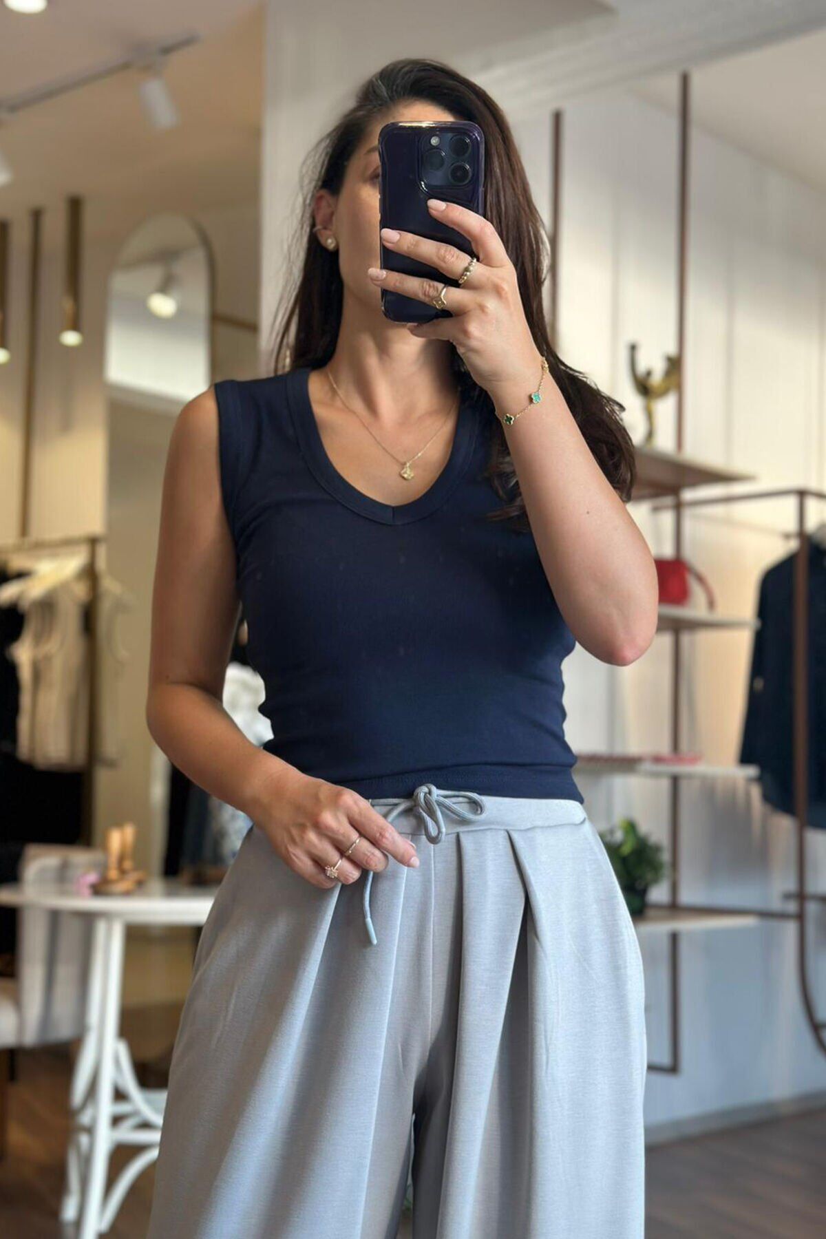 Bu lacivert V yaka pamuklu ve likralı body, şıklığı ve rahatlığı bir arada sunar. Her tarz kıyafetle mükemmel uyum sağlayan body, günün her anında konfor sunar. Esnek yapısıyla hareket özgürlüğü sağlarken, v yaka detayıyla da zarif bir görünüm sunar. Gardırobunun vazgeçilmezi olmaya aday!