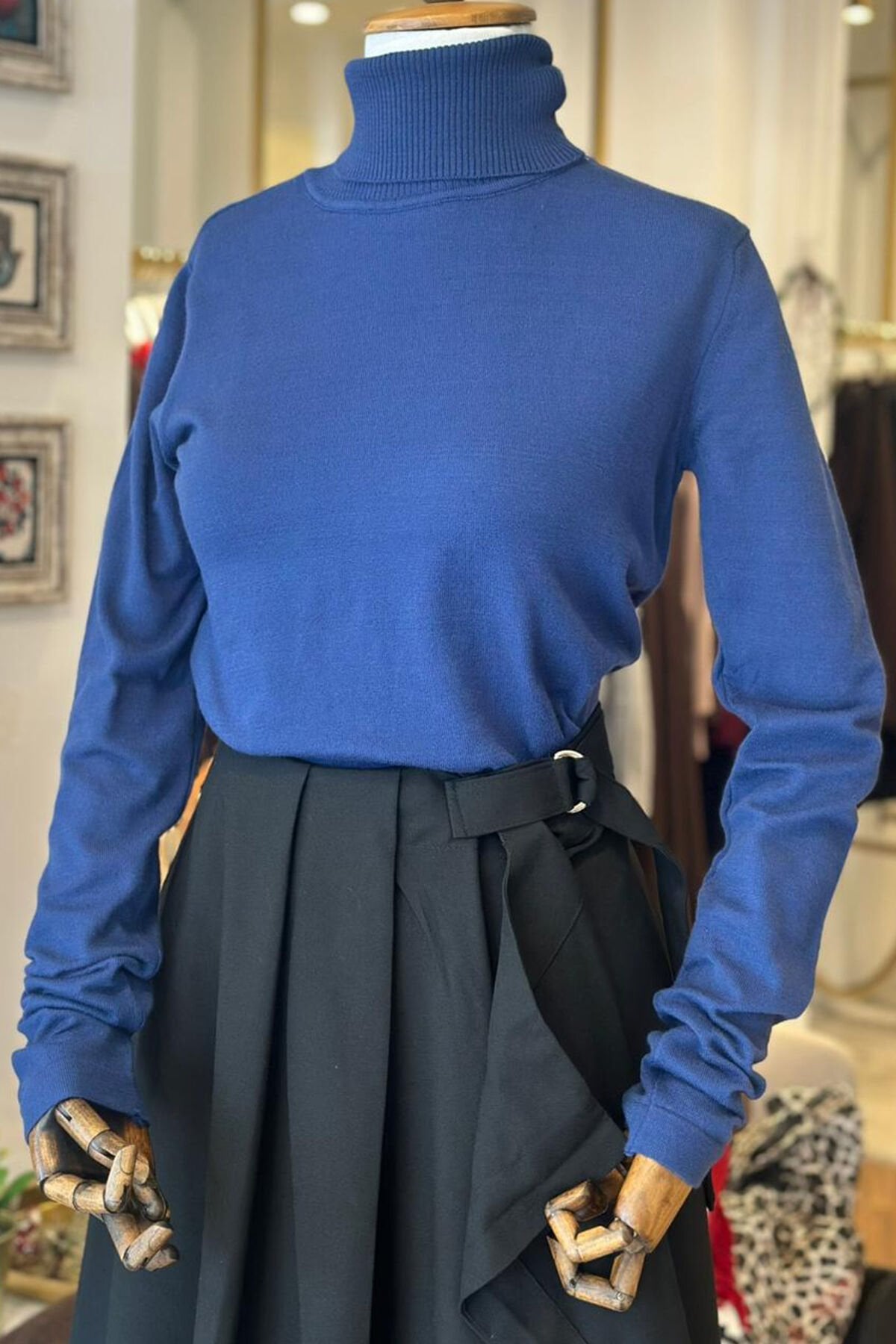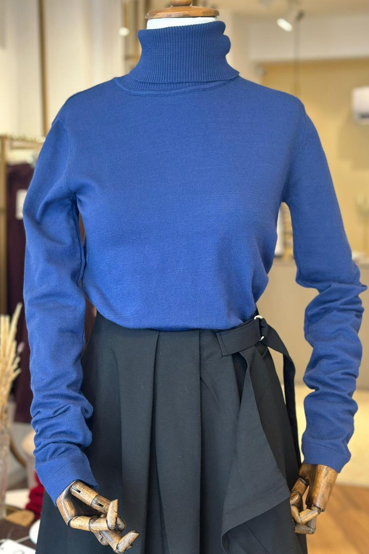 Mavi balıkçı yaka standart beden triko,dokusu ve nefes alan yapısı ile en çok giydiğiniz parça olacak.