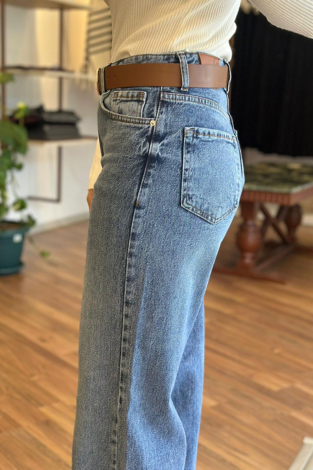 Mavi straight jean, klasik kesimi ve rahat kullanımıyla her tarza uyum sağlar.Günlük kombinlerde şıklığı yakalamak isteyenler için ideal bir tercih. Dayanıklı yapısıyla uzun ömürlü kullanım sunar. Kemer pantolana aittir.