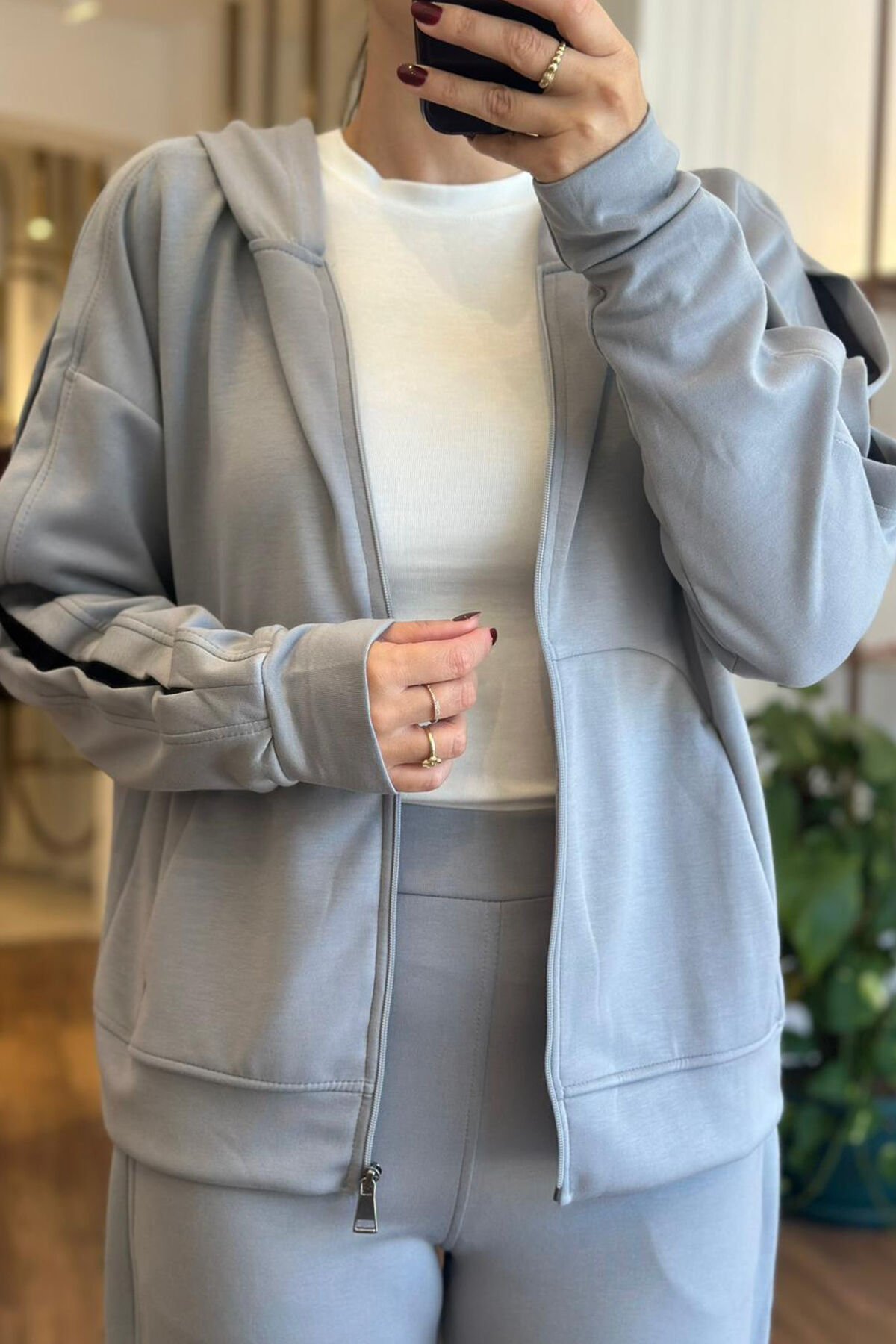 Gri Modal Kumaş Premium Eşofman Takımı, yumuşak dokusu ve nefes alabilir özelliği ile optimum konfor sunar. Modern kesimi ve şık tasarımı sayesinde hem spor yaparken hem de günlük kullanımda ideal tercihtir. Dayanıklı ve uzun ömürlü yapısıyla her sezon gardırobunuzun vazgeçilmezi olur.