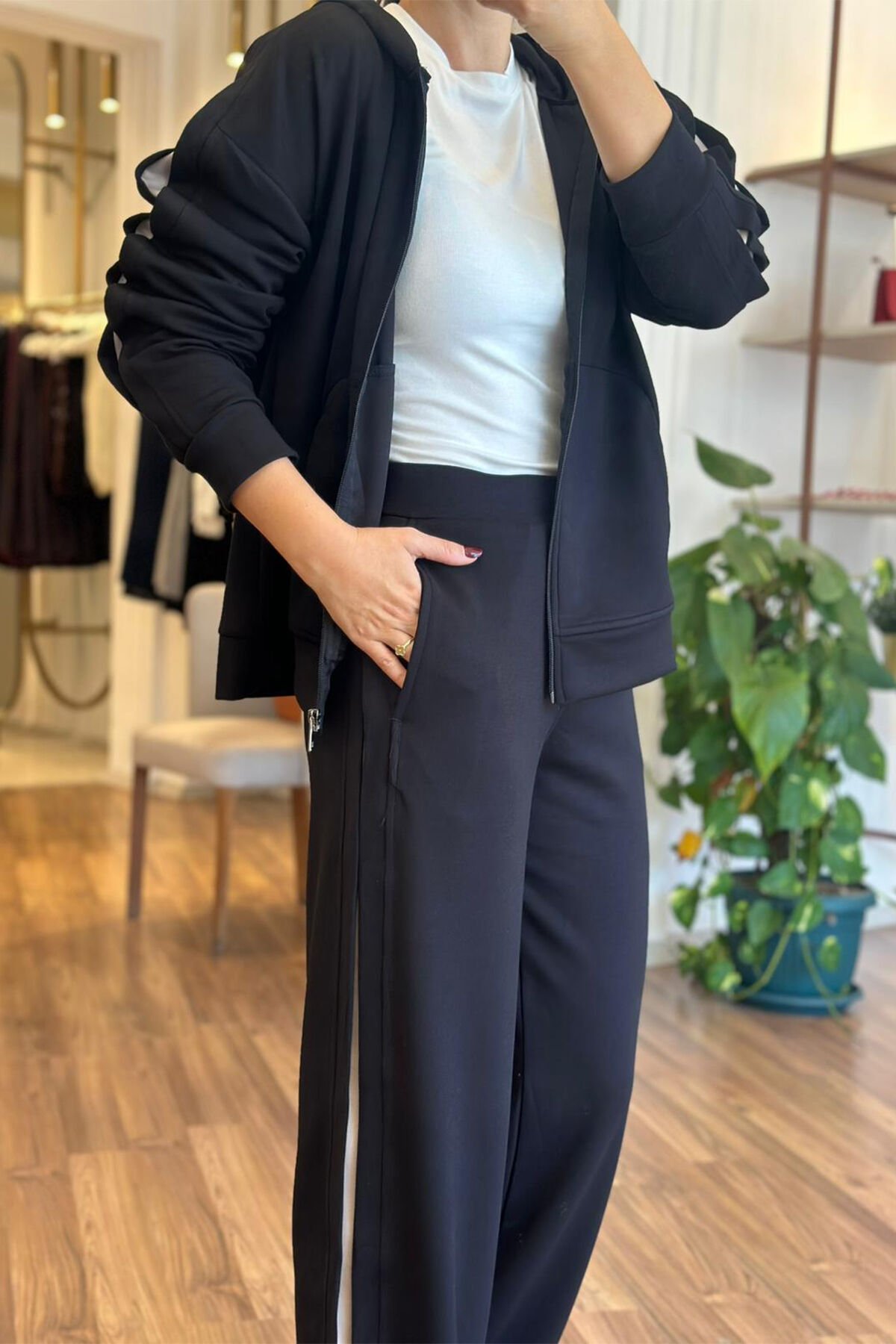 Siyah Modal Kumaş Premium Eşofman Takımı, yumuşak dokusu ve nefes alabilir özelliği ile optimum konfor sunar. Modern kesimi ve şık tasarımı sayesinde hem spor yaparken hem de günlük kullanımda ideal tercihtir. Dayanıklı ve uzun ömürlü yapısıyla her sezon gardırobunuzun vazgeçilmezi olur.