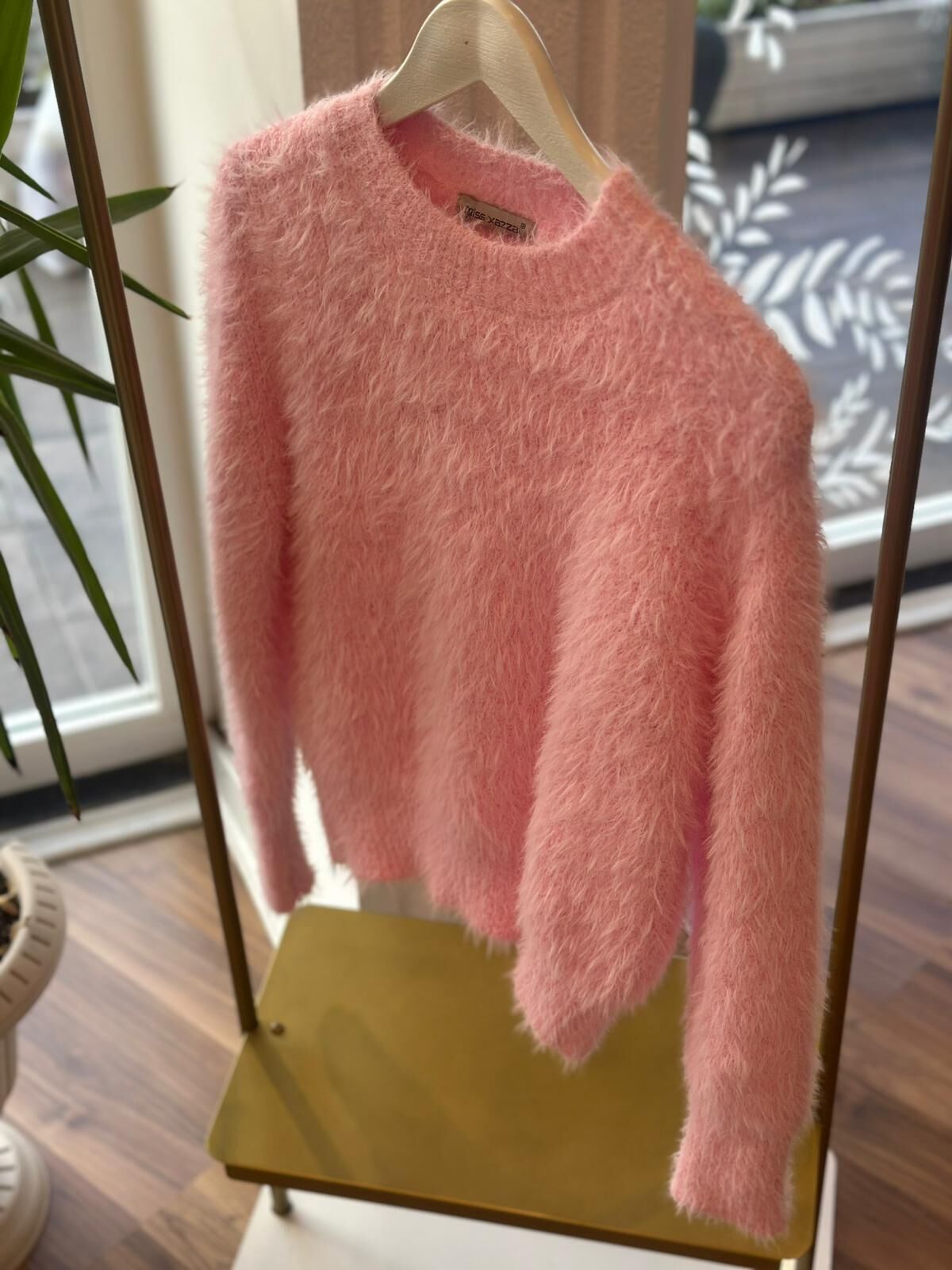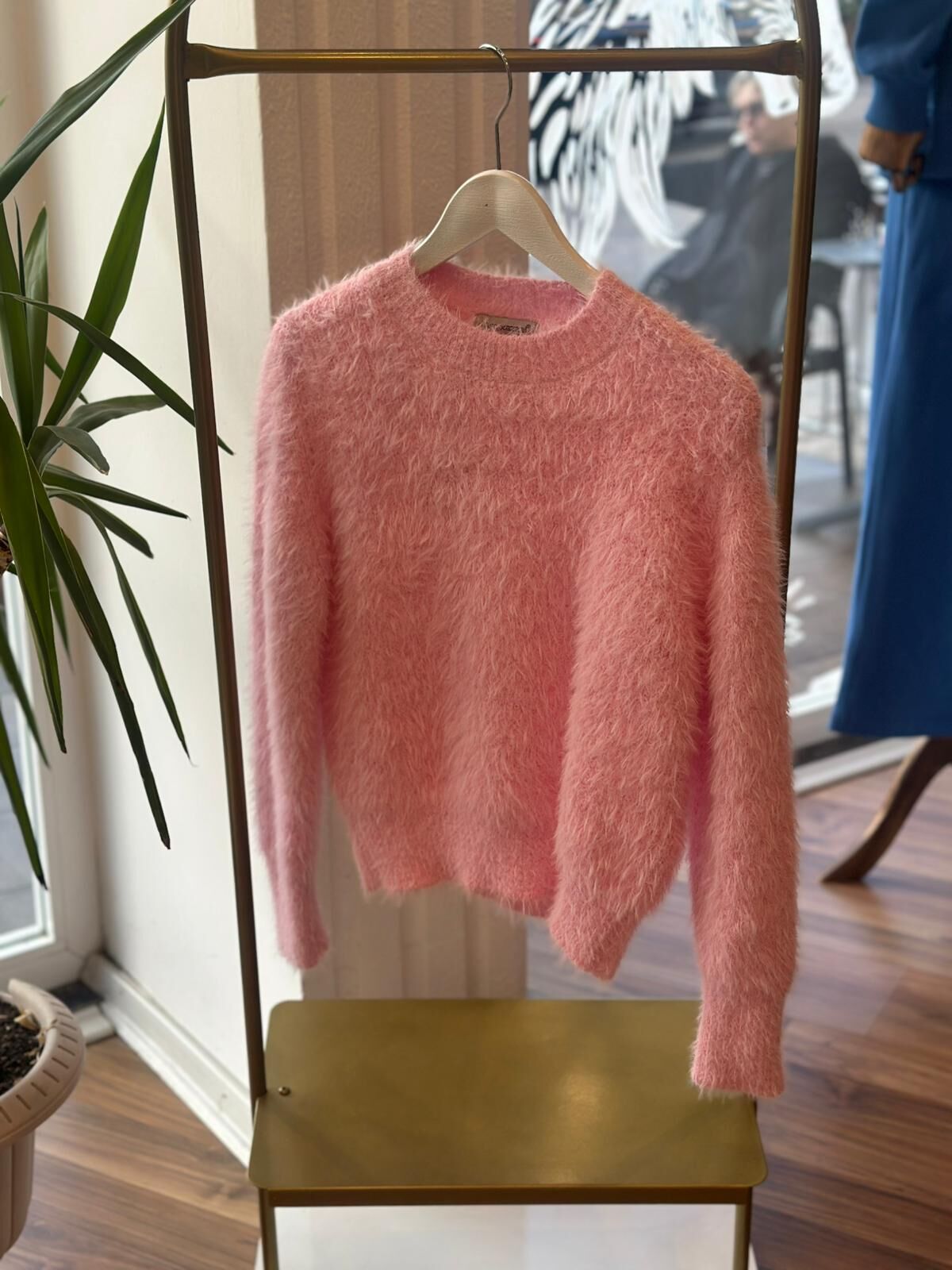 Model üzerindeki kazak pembenin sevilen tonunda standart beden ve rahat kalıptadır. Giyçık kombinleriniz için vazgeçilmez olacak.