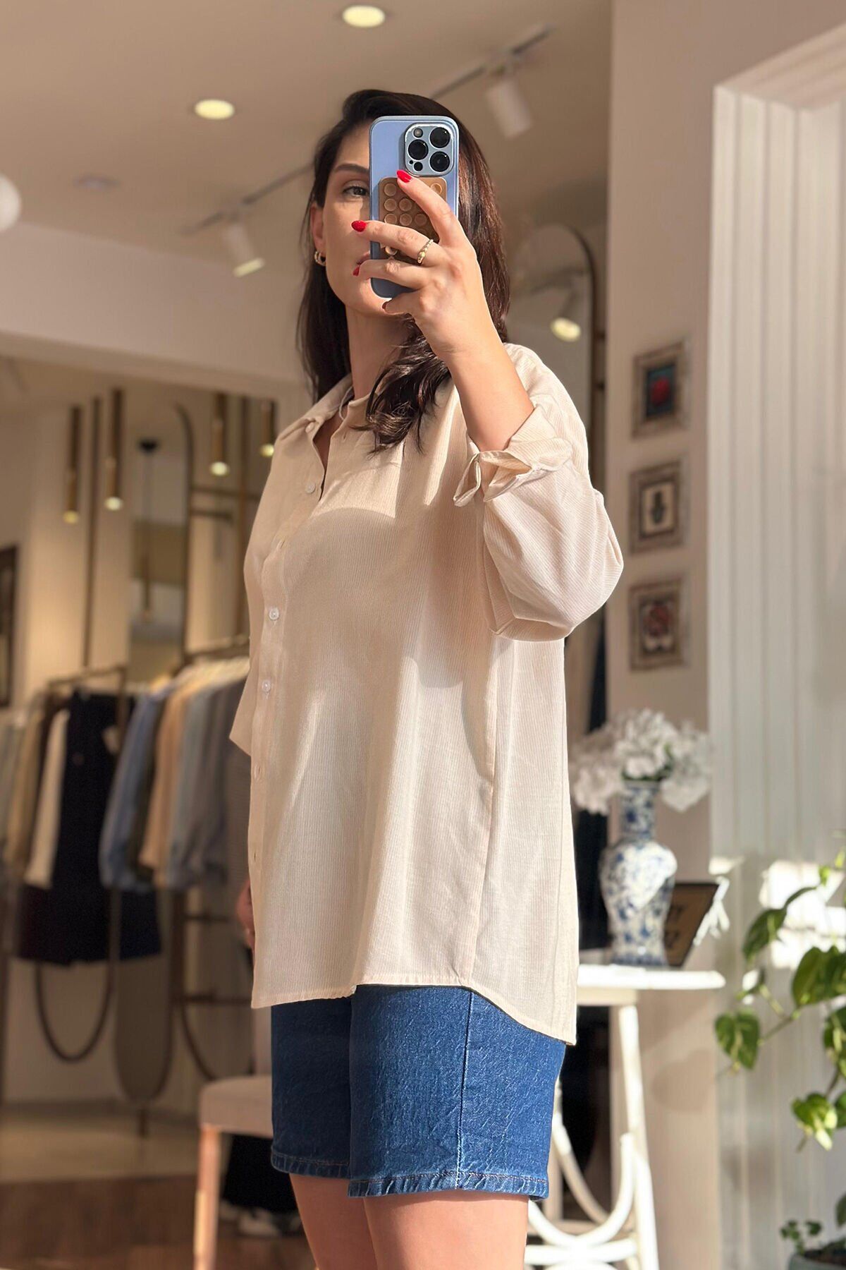 Bu pudra rengi çizgili gömlek, %100 pamuklu kumaşıyla rahatlık ve konfor sunar. Şık çizgili tasarımıyla hem iş hem de günlük kullanım için idealdir. Gömleğin yumuşak dokusu ve rahat kesimi, her mevsim rahatlıkla giyilebilir.