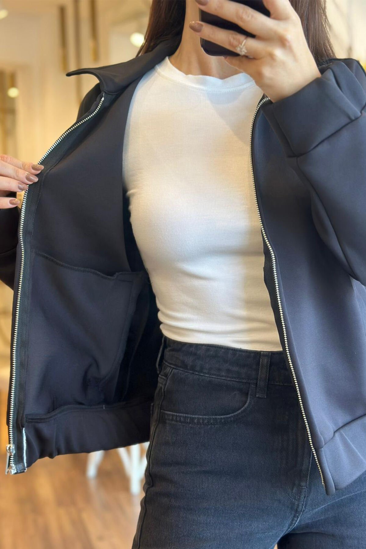 Şık ve modern tasarımıyla Siyah İpkyl Scuba Kumaş İnce Ceket, hafif yapısı sayesinde konforlu kullanım sunar. Dayanıklı scuba kumaşı teri emmez, formunu uzun süre korur. Hem günlük hem de özel kombinlerde ideal şıklık sağlar. Çok yönlü, sezonun favorisi.