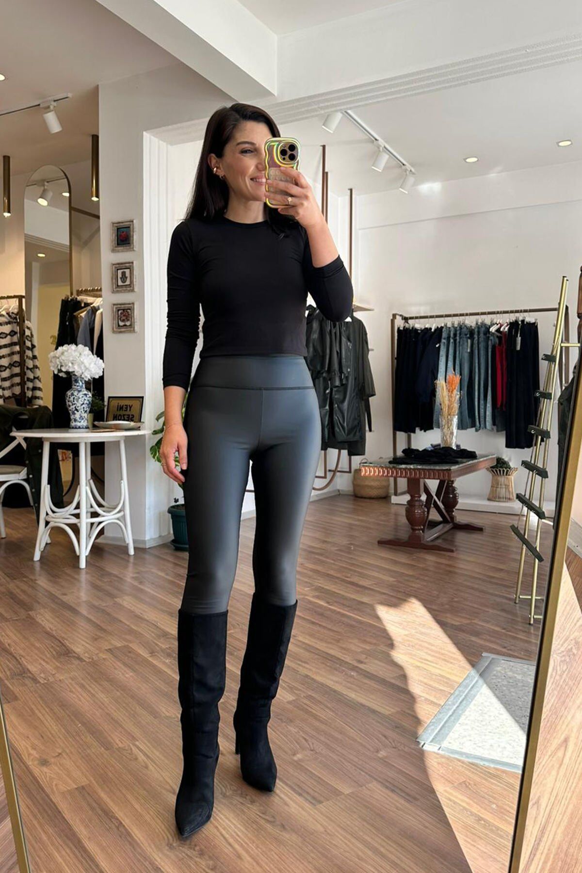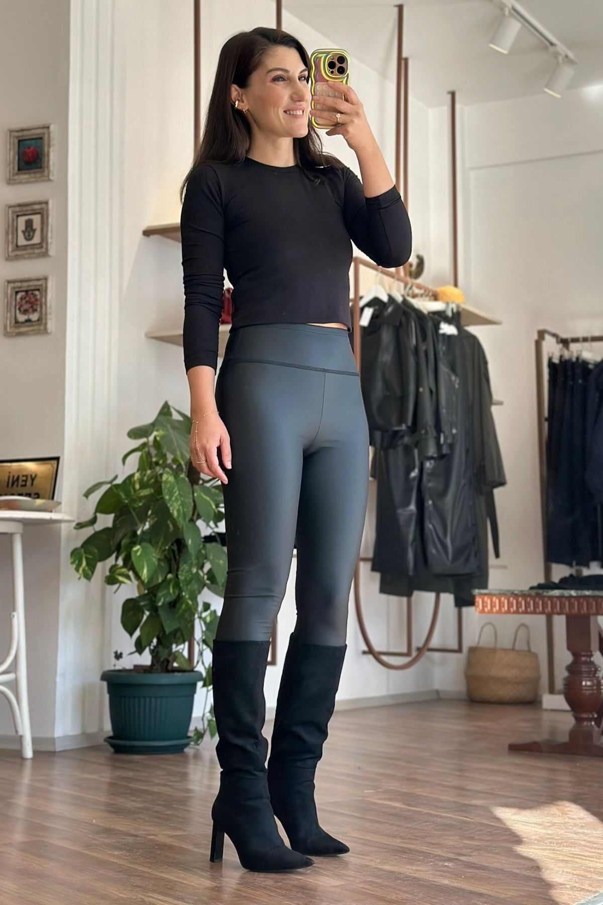 "Mat deri yüksek bel su geçirmeyen tayt, konforlu ve şık tasarımıyla dikkat çekiyor. Esnek yapısıyla hareket özgürlüğü sunarken, su geçirmeyen özelliğiyle kullanımı pratik hale getiriyor. Şıklığı ve rahatlığı bir arada arayanlar için ideal bir seçenek."