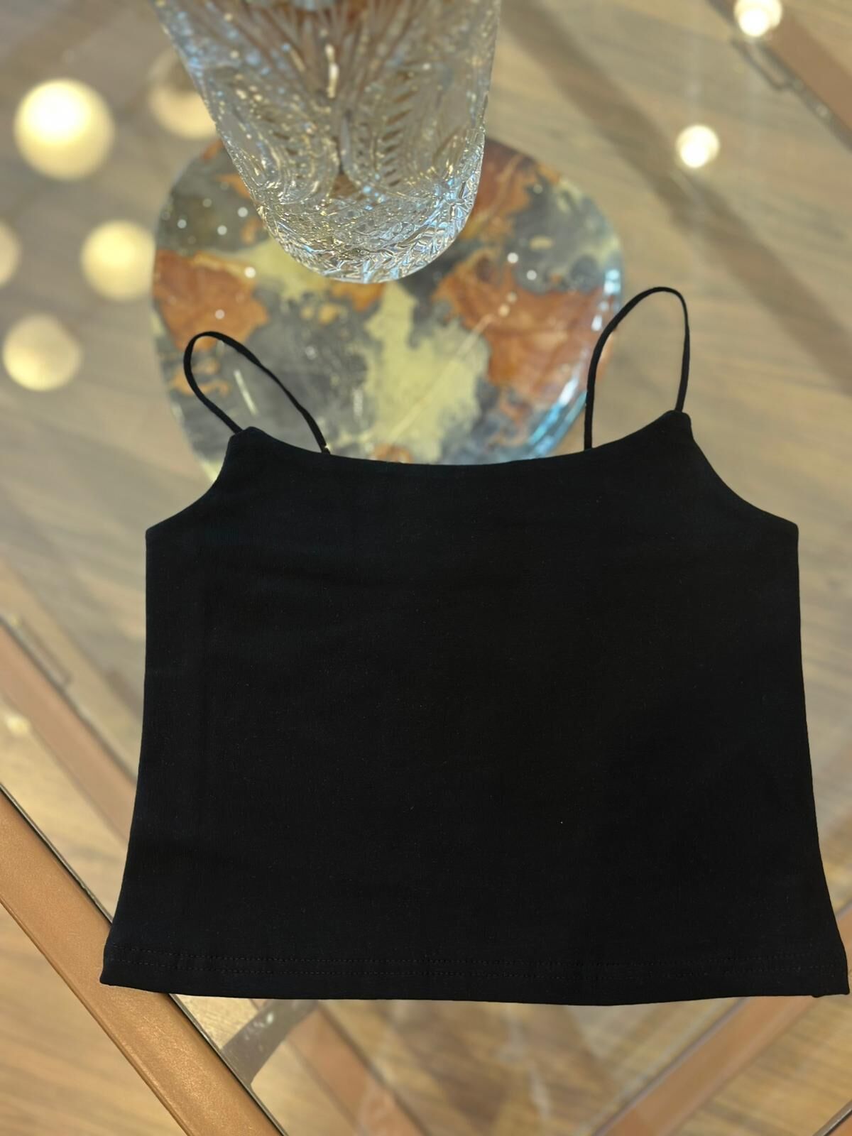 Bu siyah rengi pamuklu crop üst, şık ve rahattır. Yumuşak dokusu ve askılı tasarımı sayesinde gün boyu konfor sunar. Herhangi bir stile kolayca uyum sağlayarak gardırobunuzun vazgeçilmezi olacak. Bu crop üstüyle şıklığı ve rahatlığı bir arada bulabilirsiniz.