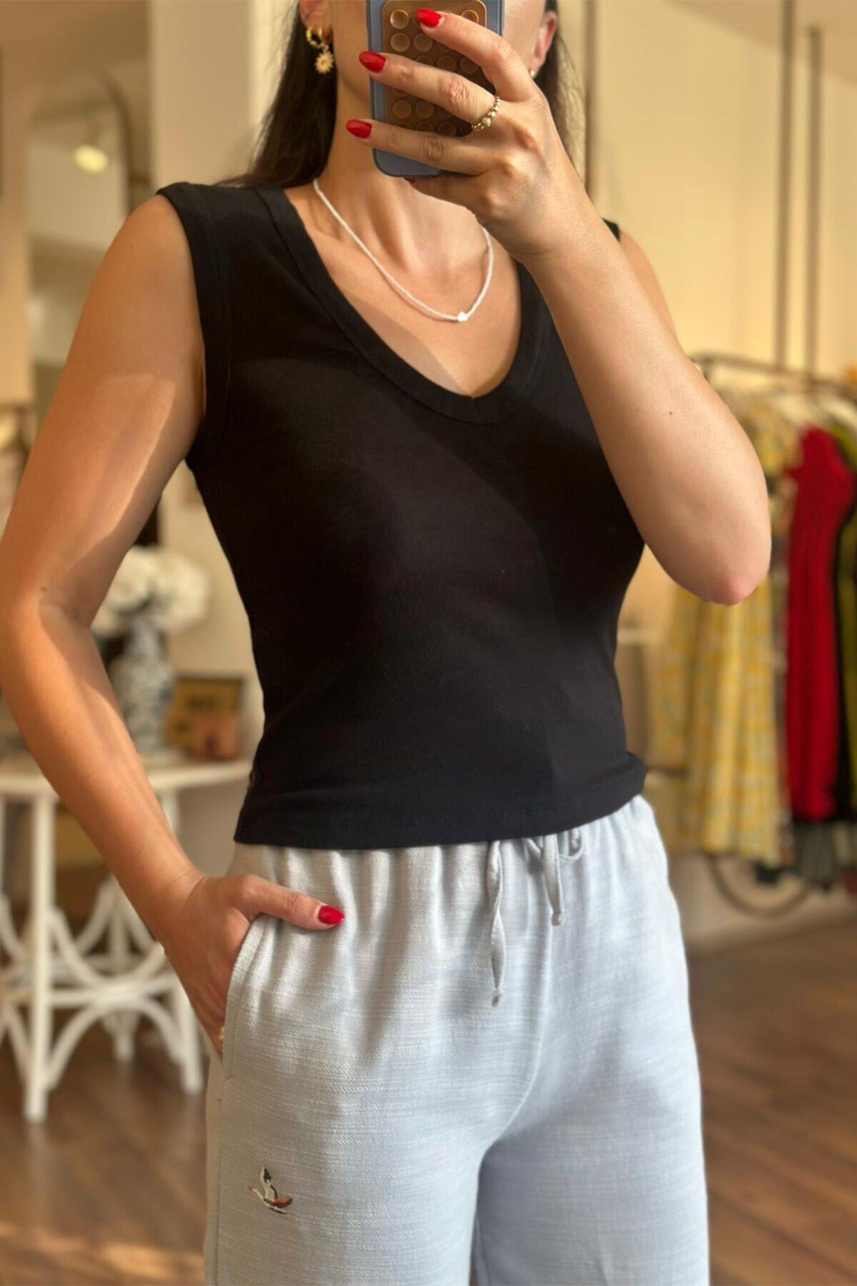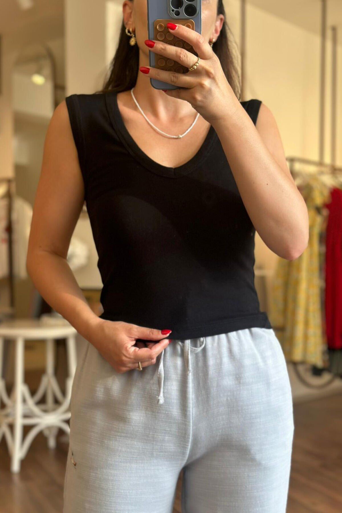 Bu siyah V yaka pamuklu ve likralı body, şıklığı ve rahatlığı bir arada sunar. Her tarz kıyafetle mükemmel uyum sağlayan body, günün her anında konfor sunar. Esnek yapısıyla hareket özgürlüğü sağlarken, v yaka detayıyla da zarif bir görünüm sunar. Gardırobunun vazgeçilmezi olmaya aday!