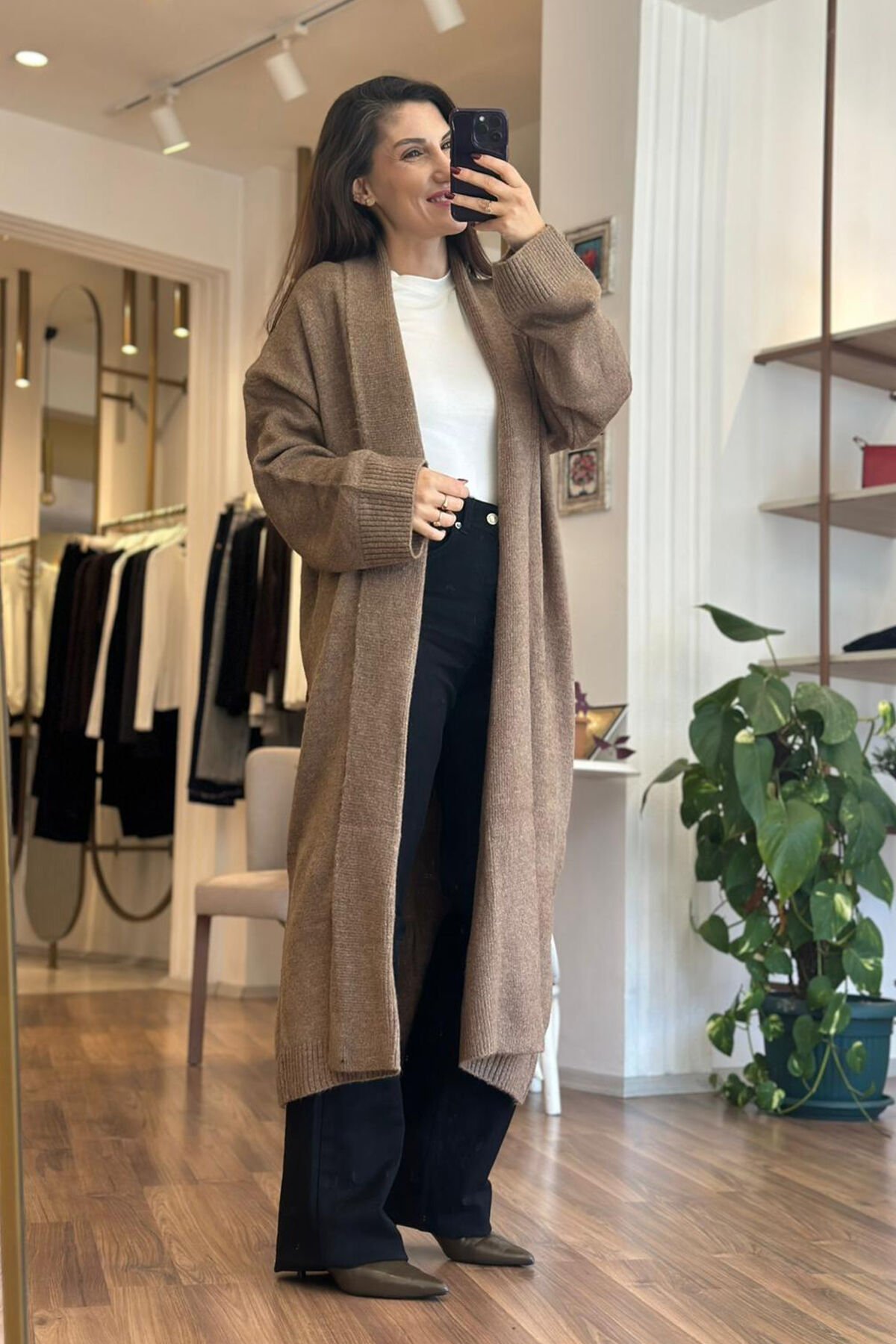 Sütlü Kahve Maxi Boy Triko Hırka, şıklığı ve konforu bir araya getirir. Yumuşak dokusu ve uzun kesimiyle günlük kombinlerinize zarif bir dokunuş sağlar. Soğuk havalarda sizi sıcak tutarken stilinizi tamamlar. Her tarza uyum sağlayan ideal bir tercih.