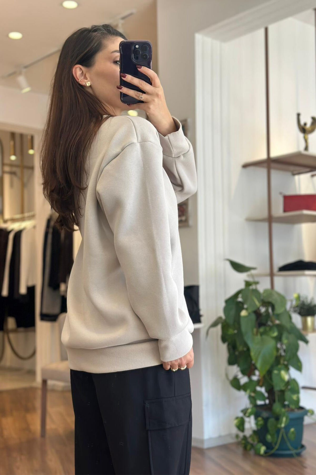 Klasik ve şık tasarımıyla taş rengi önü nakış işlemeli içi şardonlu sweatshirt, hem rahat hem de sıcak tutar. Yumuşak dokusu sayesinde günlük kullanım için idealdir. Nakış detayları, ürüne zarif bir görünüm katarak stilinizi tamamlar.