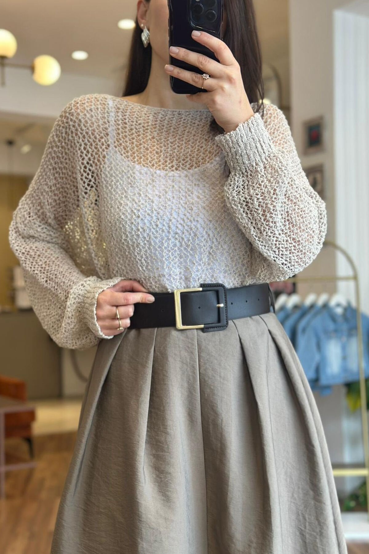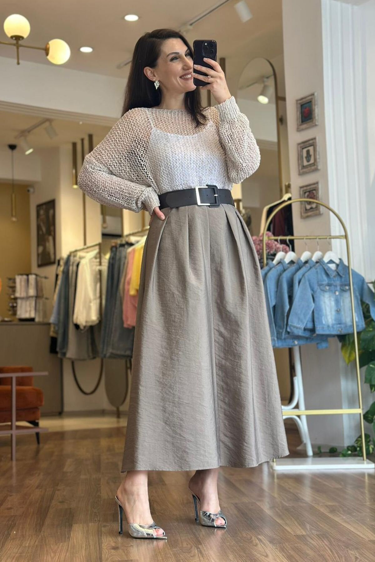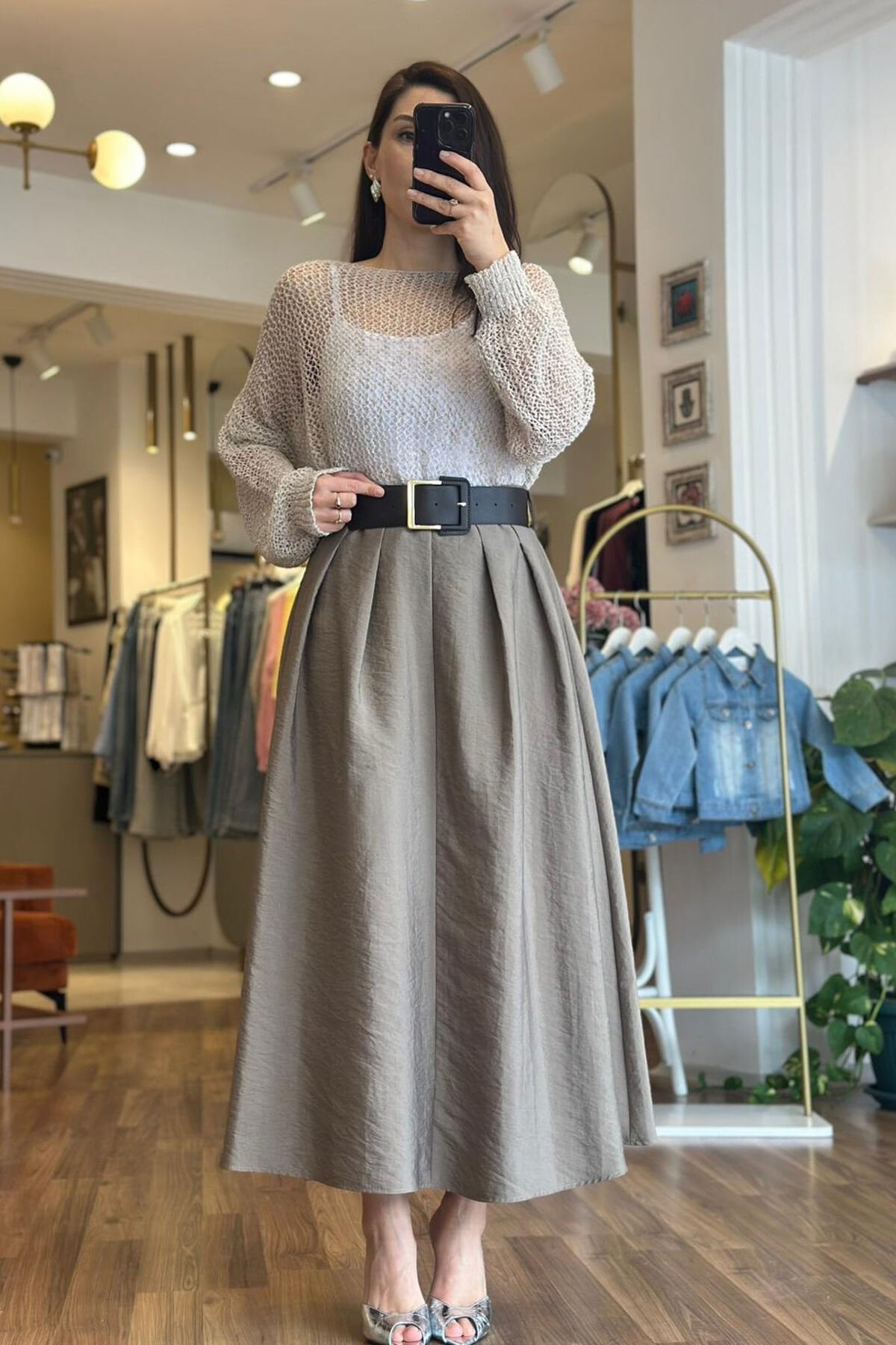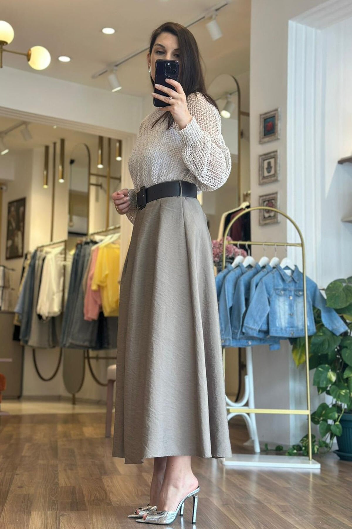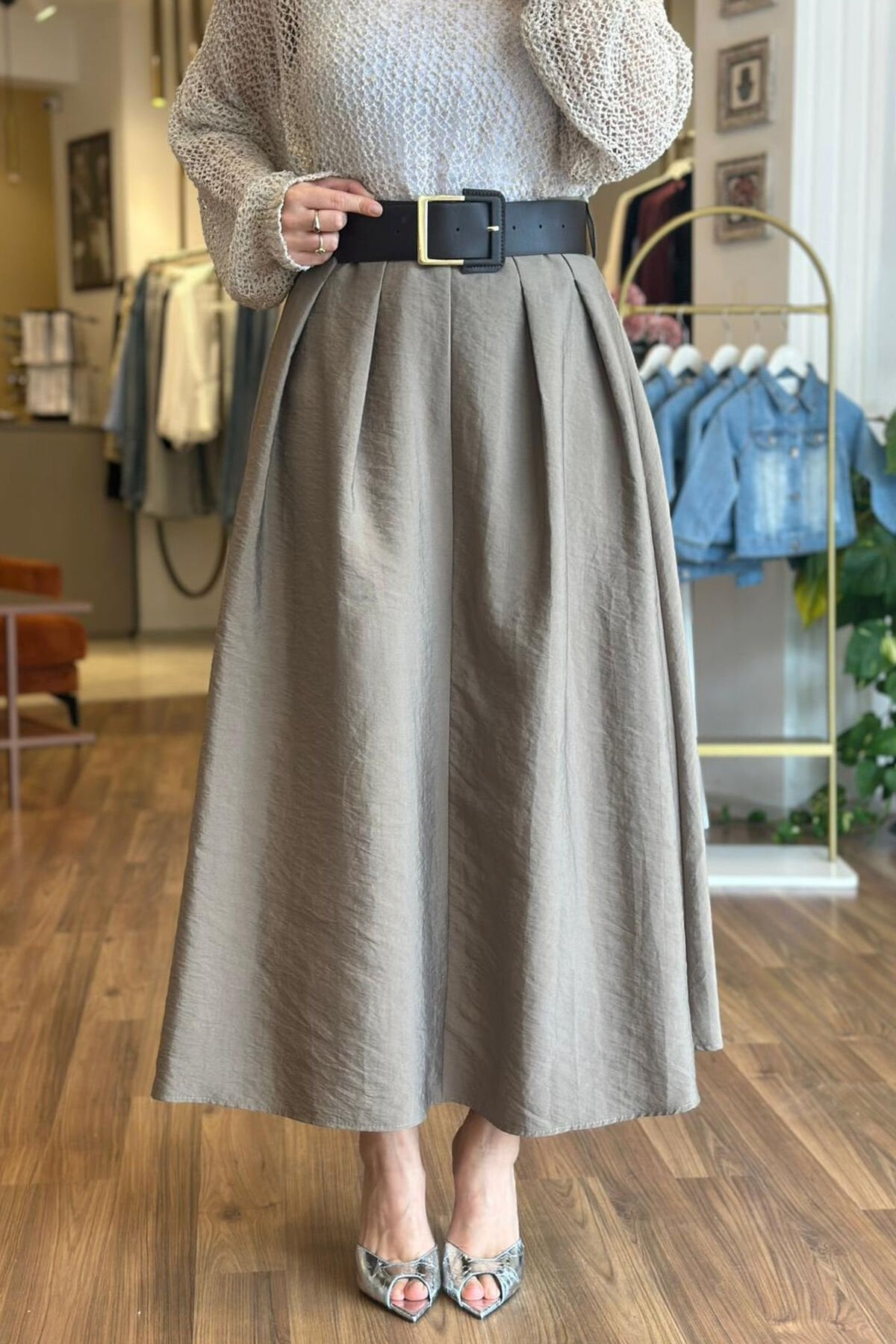 Vizon renk yüksek bel kemerli paraşüt kumaş etek, modern şıklığı ve rahat kullanımı bir arada sunar. Paraşüt kumaşın hafif ve nefes alabilir yapısı sayesinde, etek gün boyu konfor sağlar. Yüksek bel tasarımı ise bele tam oturarak zarif bir siluet oluşturur. Kemer detayı hem estetik hem de işlevsel olarak eteği tamamlar. Ayrıca, kırışmayan kumaş özelliği sayesinde, etek her zaman düzgün ve bakımlı görünür. Vizon rengi ise farklı kombinlere kolayca uyum sağlayarak stilinizi tamamlar. Bu etek, günlük ve özel günler için ideal bir seçimdir.