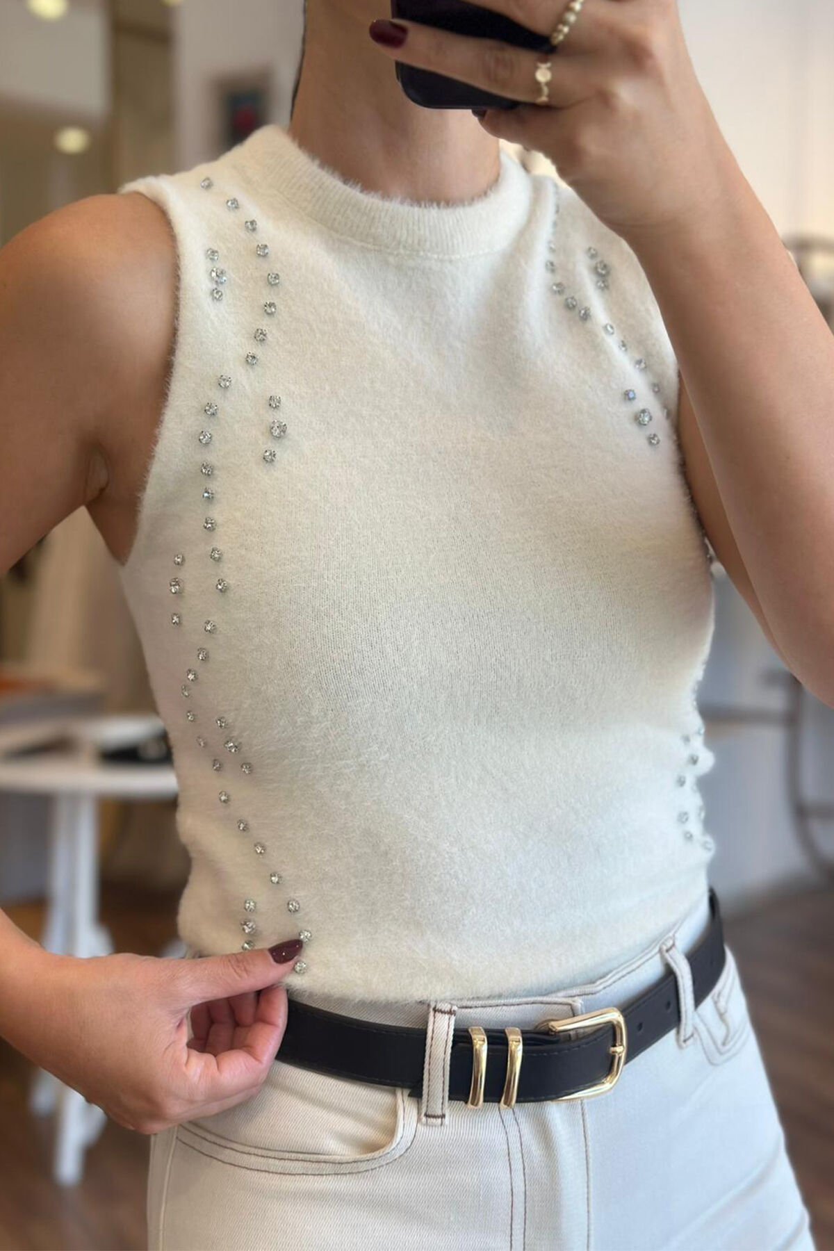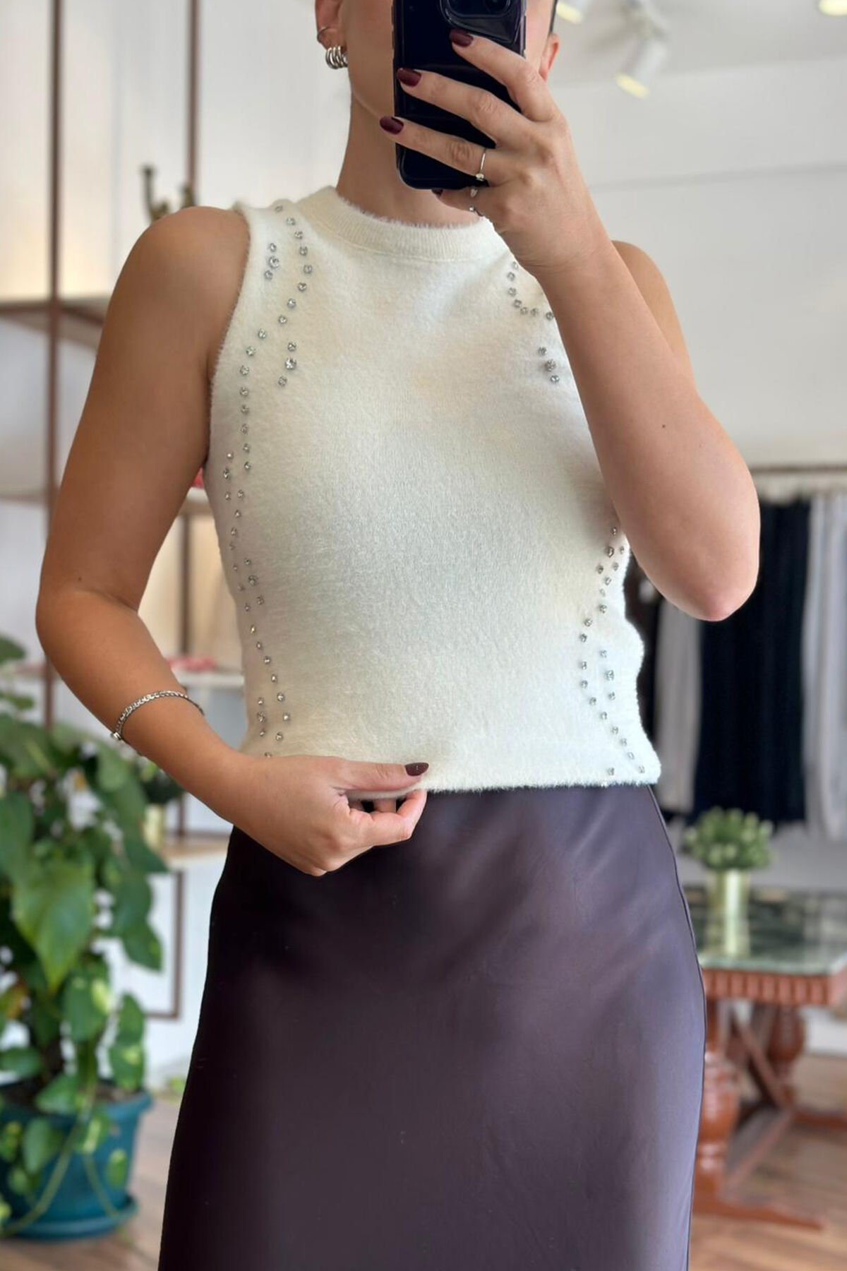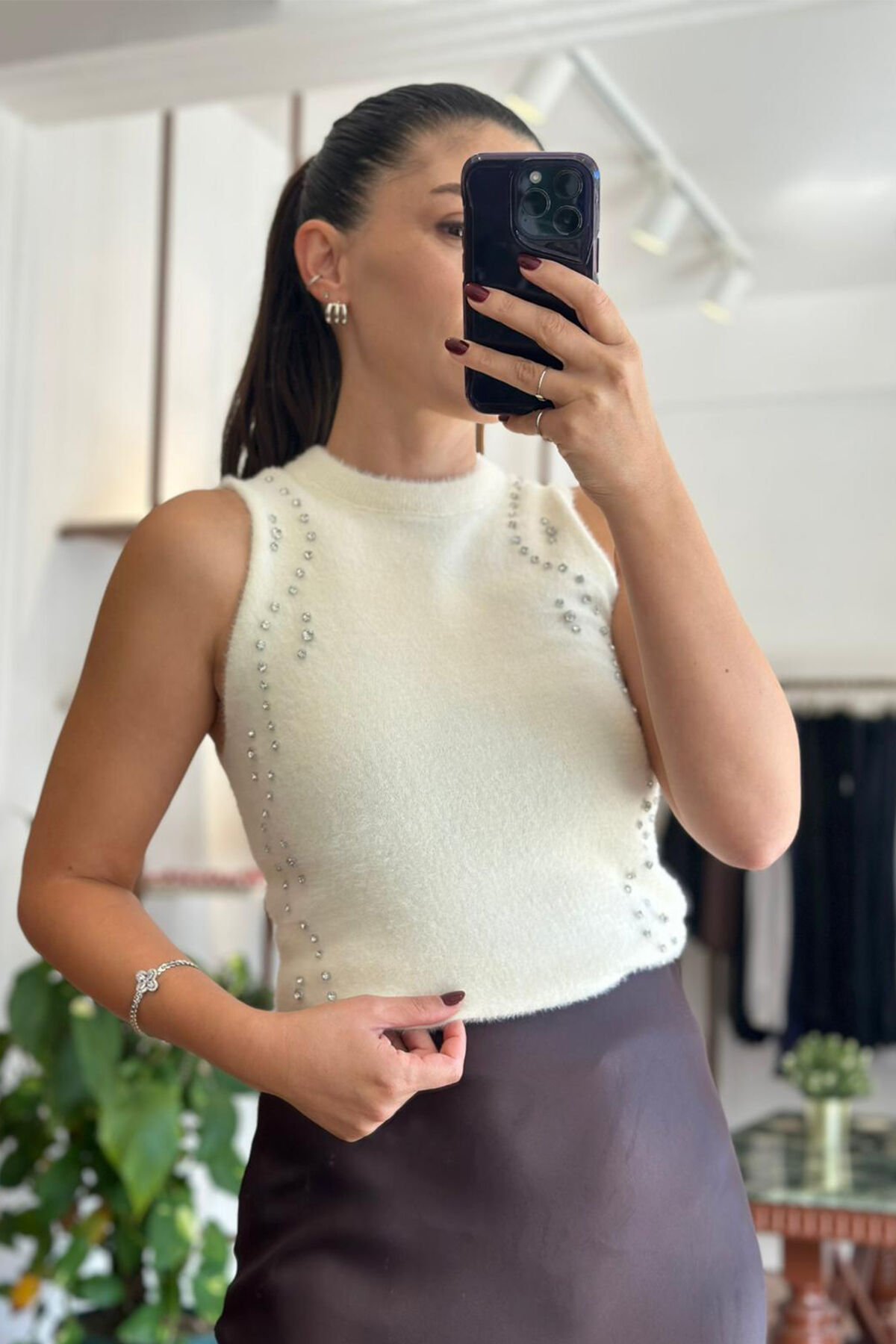 Ekru yumuşak dokulu taş baskılı süveter, şıklığı ve rahatlığı bir arada sunar. Kaliteli kumaşı sayesinde gün boyu konfor sağlar. Taş baskı detayı, modaya zarif bir dokunuş katar. Hem günlük hem özel davetlerde stilinizi tamamlayacak ideal bir parça.