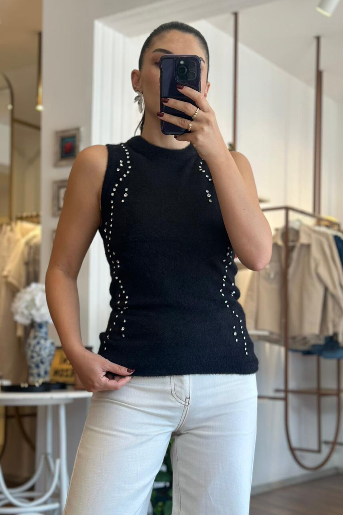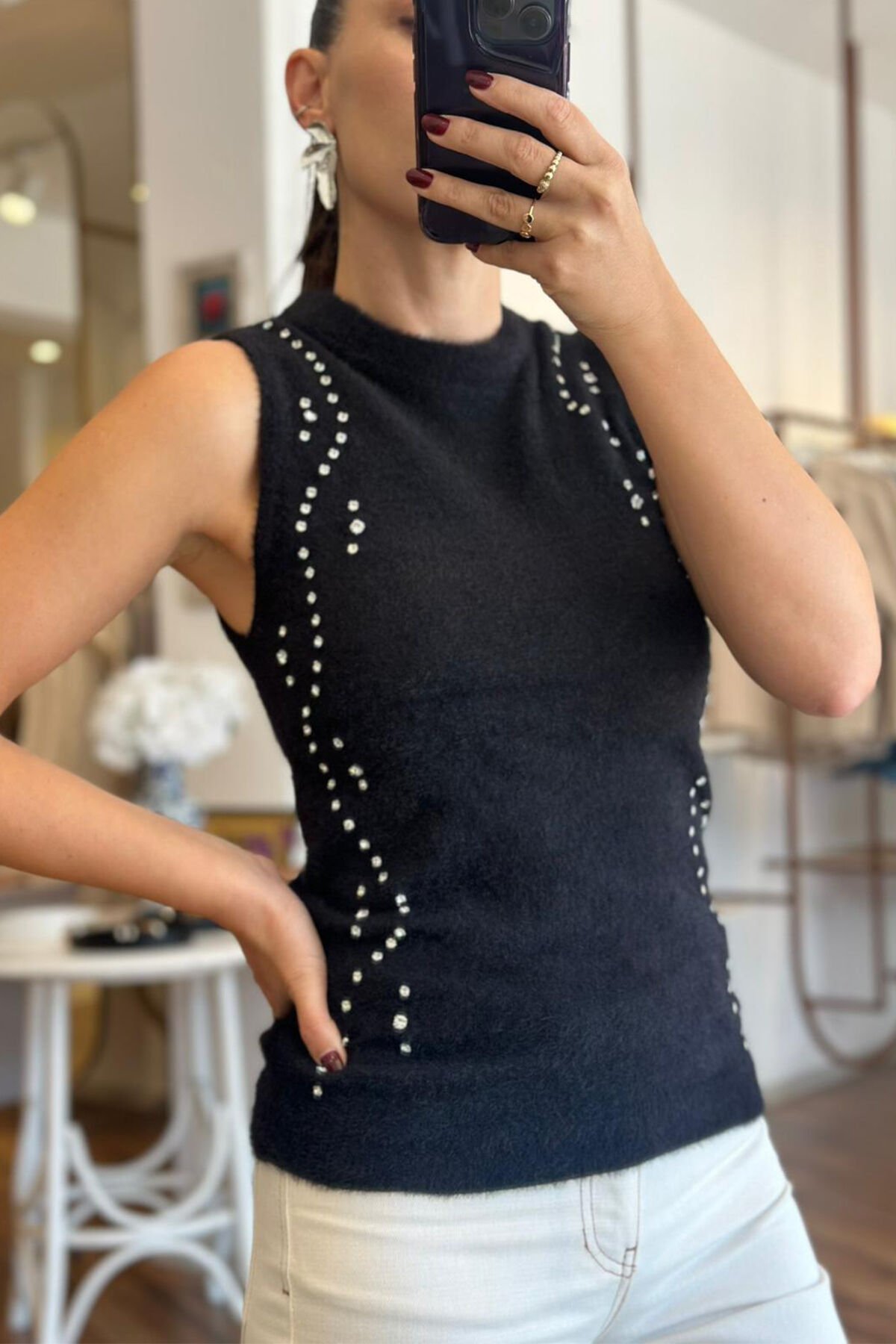 Siyah yumuşak dokulu taş baskılı süveter, şıklığı ve rahatlığı bir arada sunar. Kaliteli kumaşı sayesinde gün boyu konfor sağlar. Taş baskı detayı, modaya zarif bir dokunuş katar. Hem günlük hem özel davetlerde stilinizi tamamlayacak ideal bir parça.